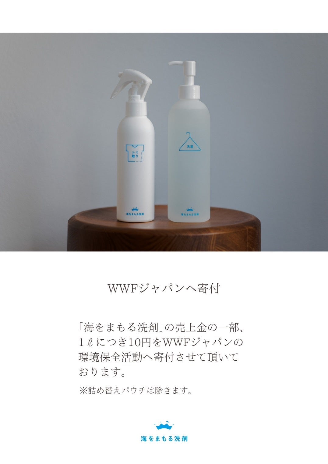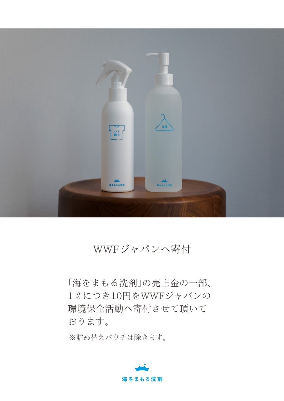 Save the Ocean株式会社では、 私たちの商品である「海をまもる洗剤」の売上量に応じて、 1ℓにつき10円を海をまもる基金として積み立て、 WWF ジャパンの環境保全活動へ寄付させて頂いております。 ※詰め替えパウチは除きます ※2022年10月分より 皆さまが毎日のお洗濯に「海をまもる洗剤」や「海をまもるコインランドリー」をお使い頂くことで、 WWFジャパンへの寄付を通じて環境保全に役立てられます。 皆さまの行動が社会に貢献されたことを目に見える数字にし、 海をまもるソーシャルアクションとして、以下のHPで公開しております。 ※毎月更新 海をまもるソーシャルアクション https://umi-mamoru.com/