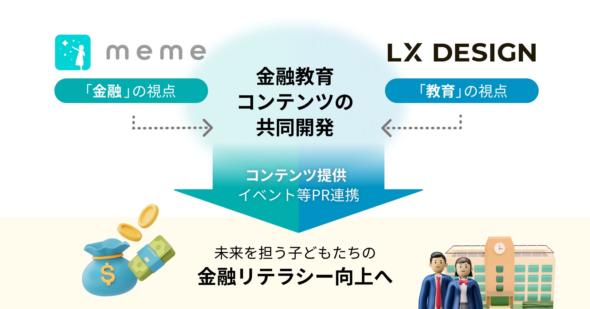 子ども向け金融教育アプリ「manimo」を提供するベンチャーMEMEがLX DESIGNと業務提携を締結