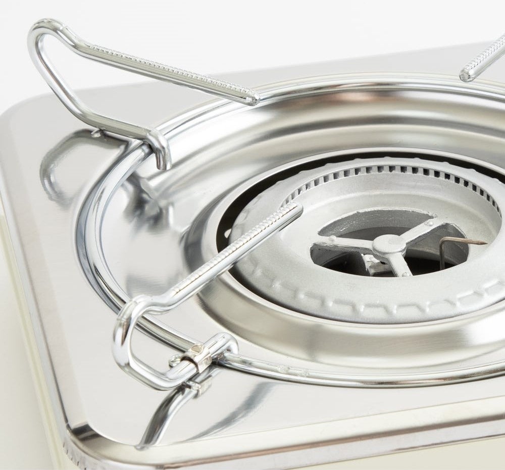 炎の分散を抑えられるため、2.6kWで3.3kW相当の火力を実現。ガスボンベの消費量も、火力が3.3kWの場合は、ボンベ1本1時間10分程度ですが、当商品は2.6kWのため1本1時間30分程度で省エネでかつ高火力が期待できます。