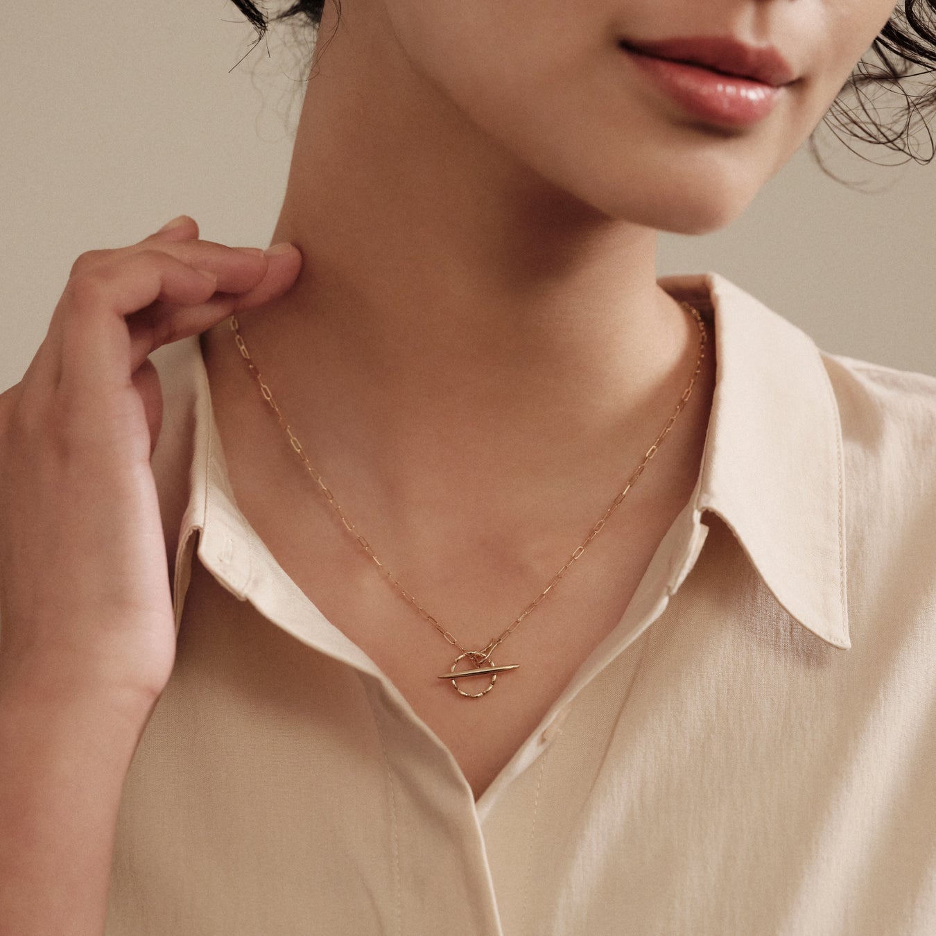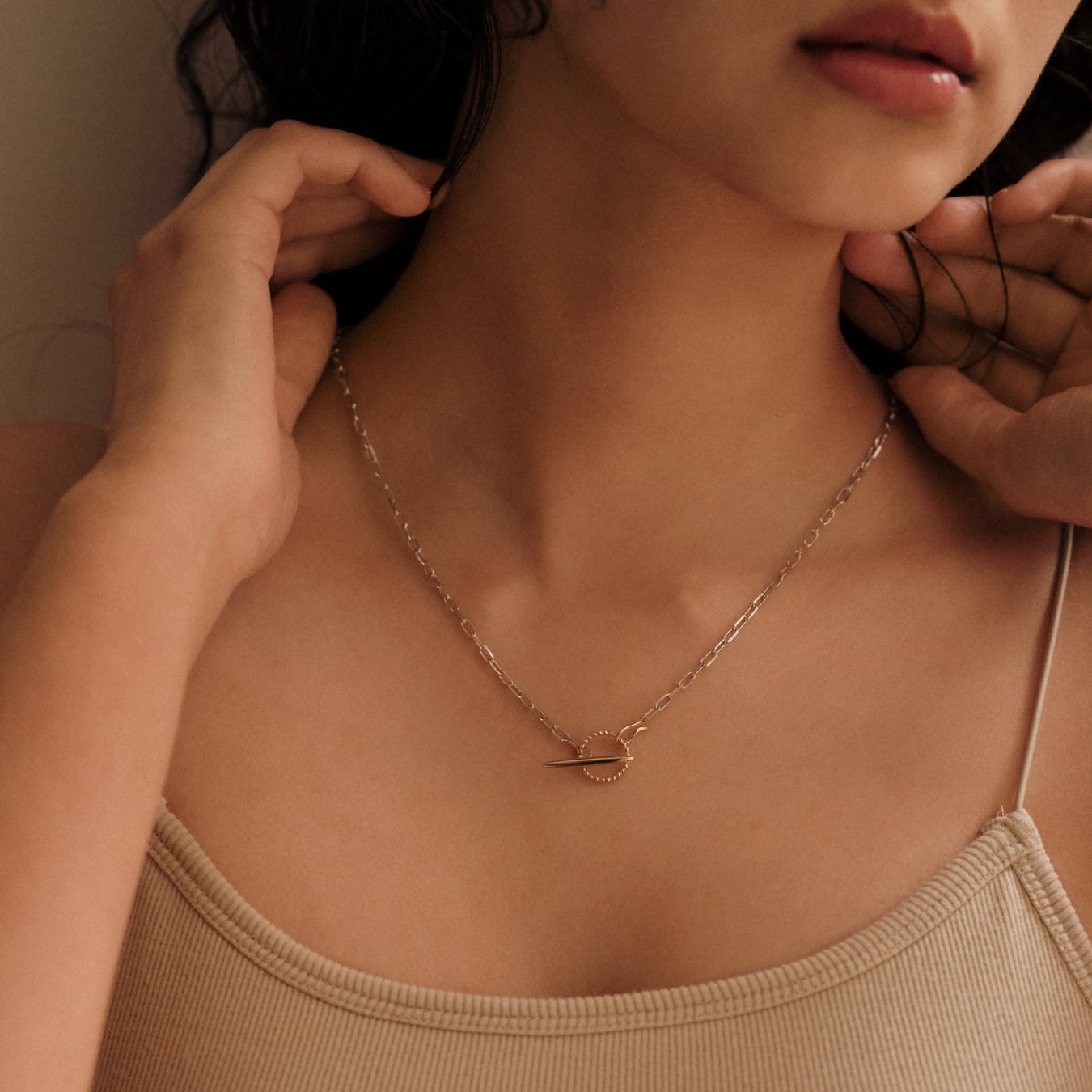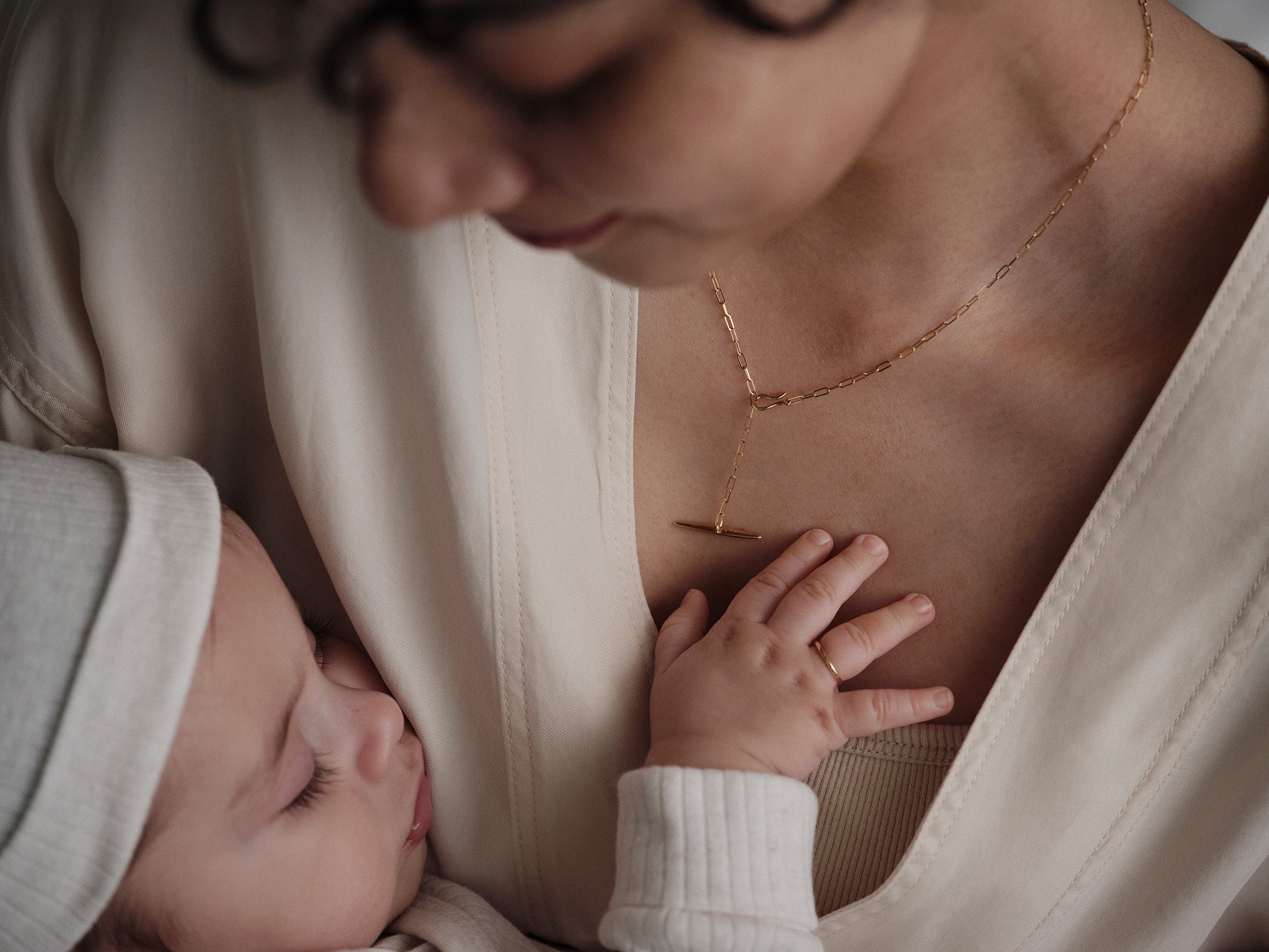 ブランド立ち上げ時は1種類のジュエリーからスタートしましたが、よりさまざまな方の好みに寄り添えるよう、この度新商品を発売します。親子のきずなを象徴する、ベビーリングとネックレスを掛け合わせたデザインはそのままに、チェーン素材やリングデザインのバリエーションを増やしました。また、ジュエリーの楽しみの幅を広げるチャームもご用意しています。