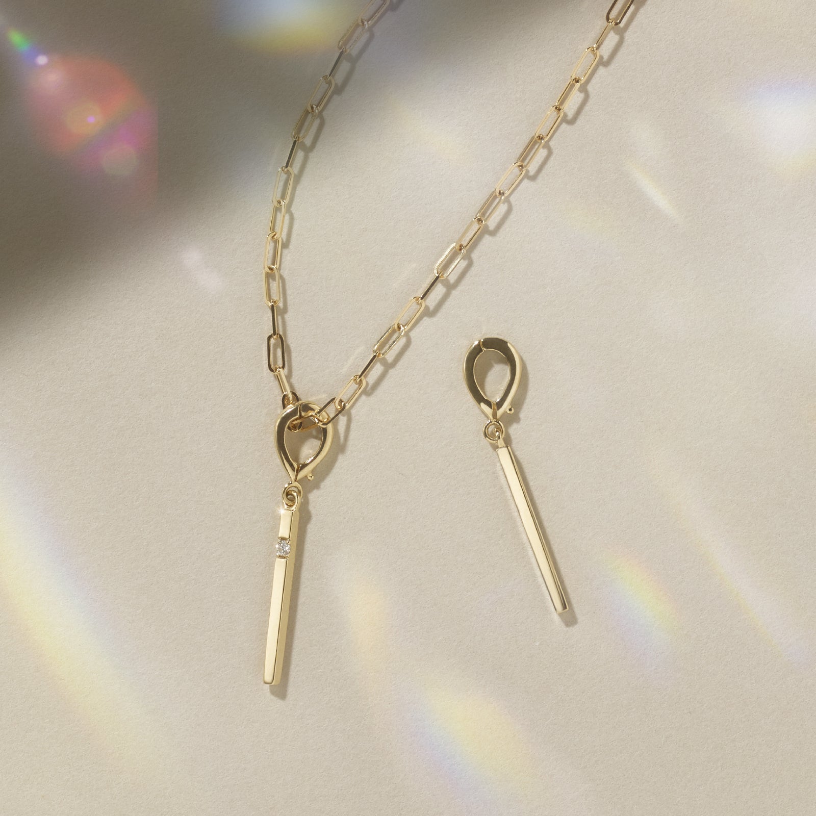 膨らんだお腹に縦⻑のチャームをつければ、全身がスッキリ見えスタイリッシュに。ワンポイントにダイヤモンドが付いたタイプもご用意しています。付け足すことで、さらに広がるアレンジをお楽しみください。