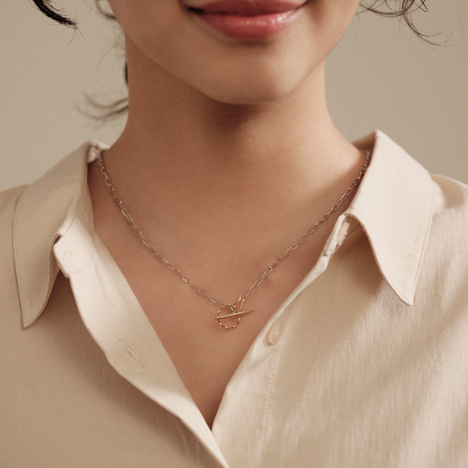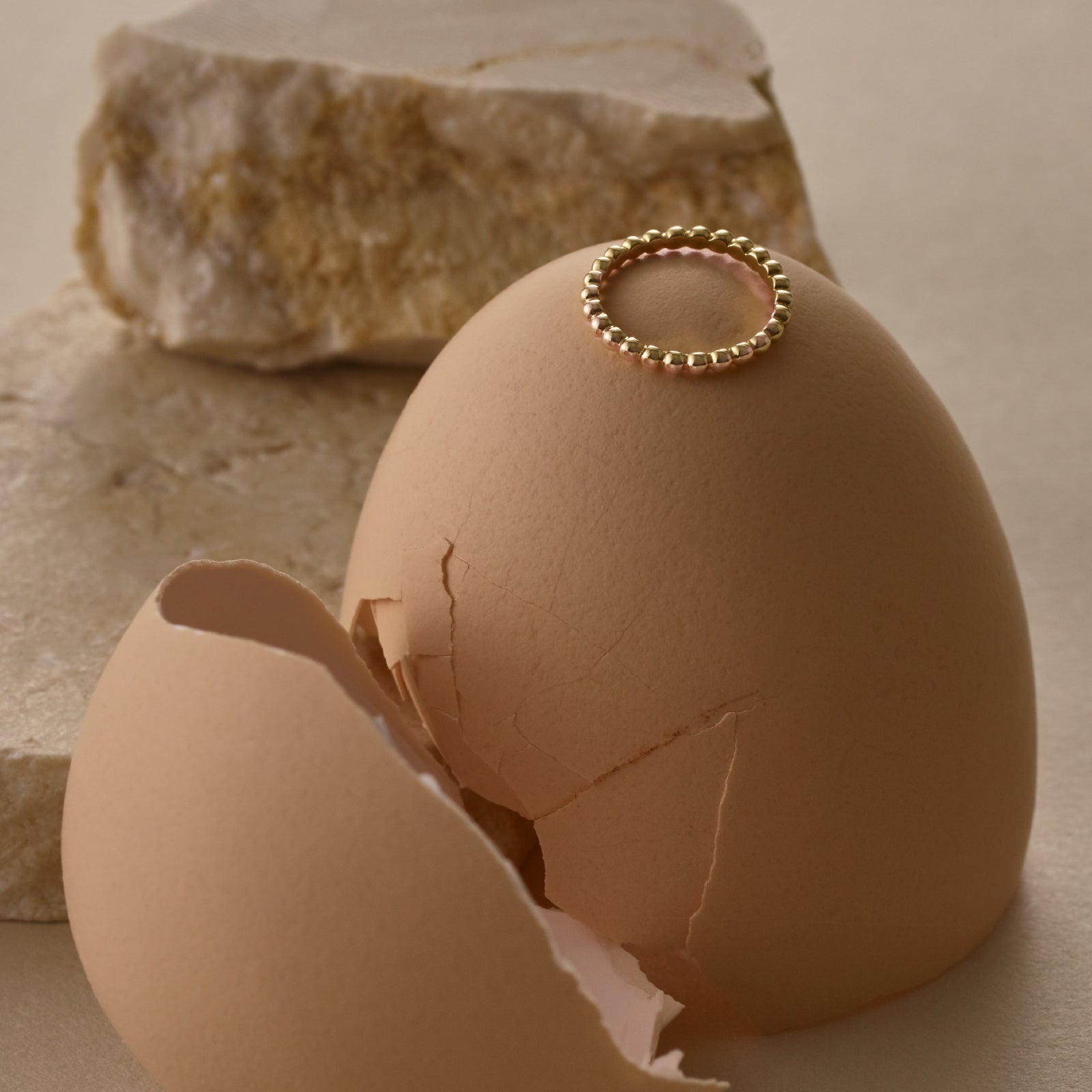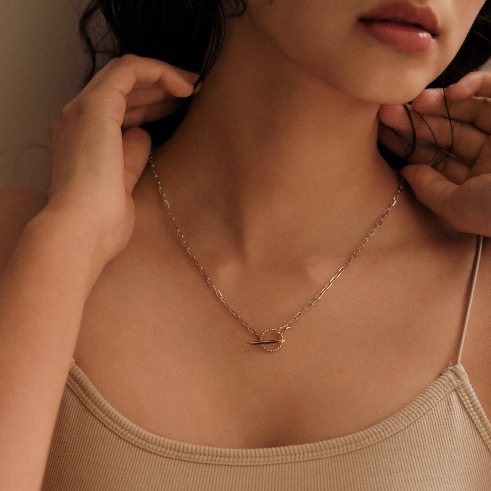 3種類のデザインのベビーリングと2種類の素材のチェーンをお選びいただき、お好みの組み合わせをお楽しみいただけます。さらに、スタイリングの幅を広げるチャームもご用意いたしました。