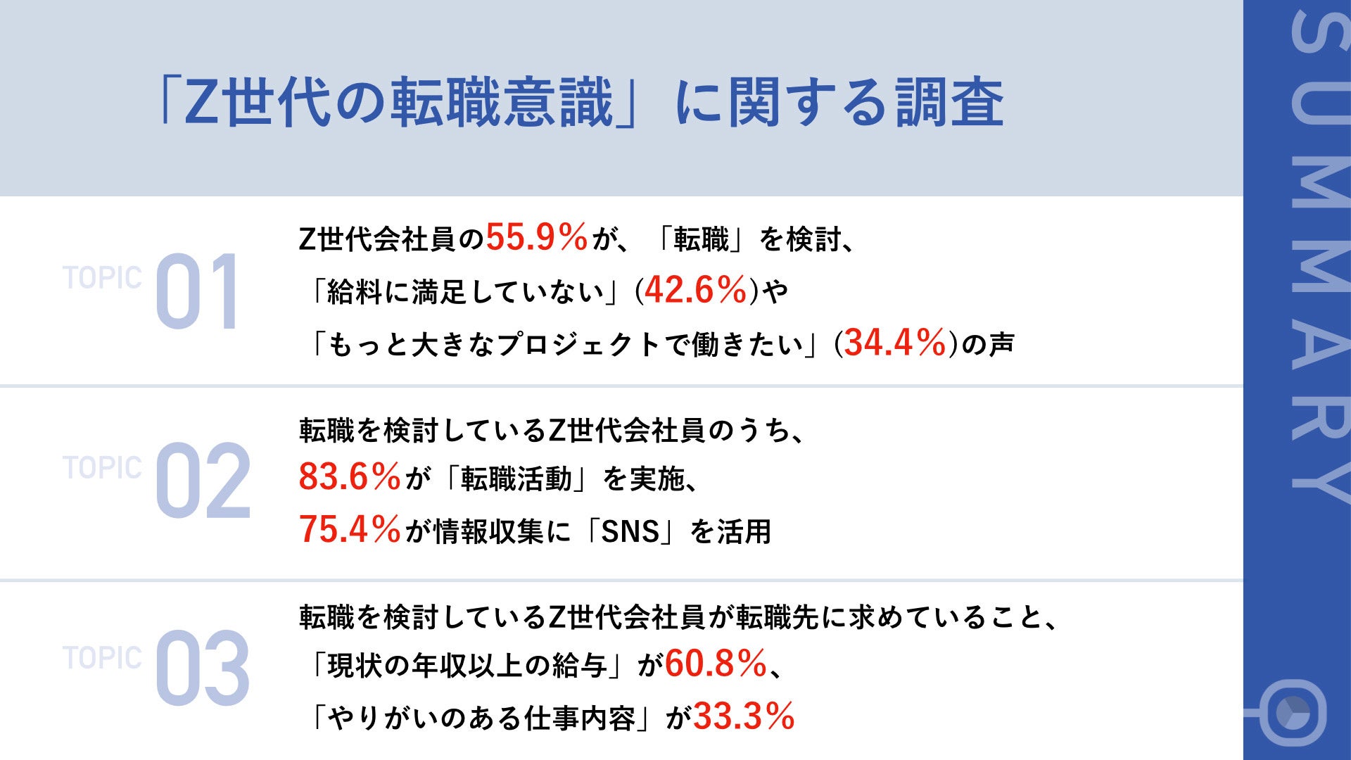 - Z世代会社員の半数以上が、「転職」を視野に入れている