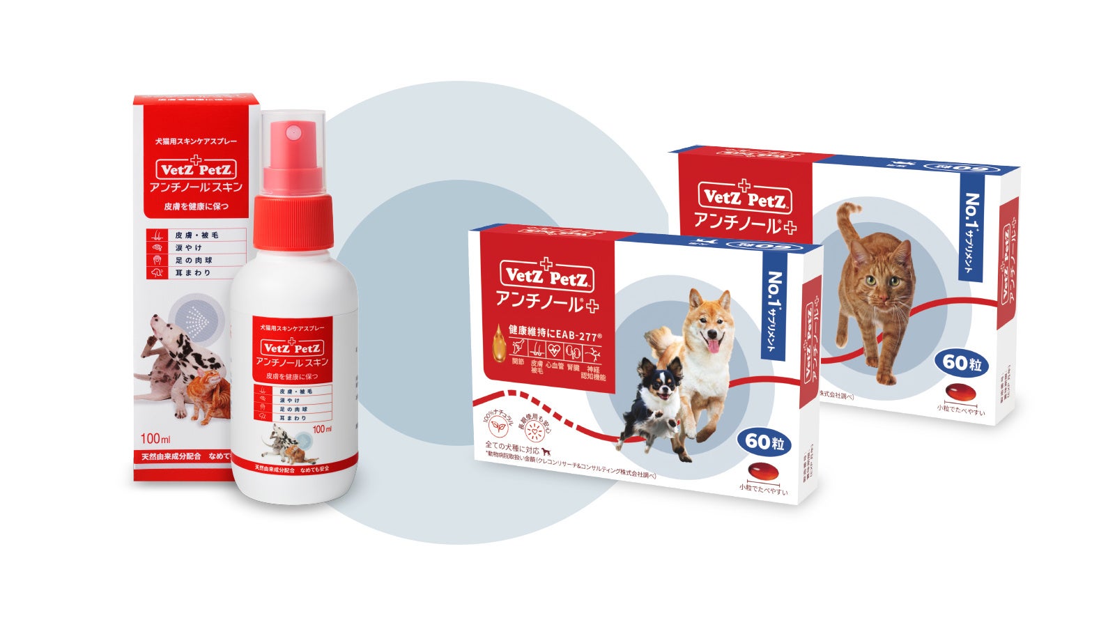 2013年3月設立以来、犬猫用サプリメント・アンチノールを、動物病院および自社ECを通じて販売しています。発売から成長を続け、現在では動物病院での取り扱いが8000軒(2021年末時点での累計取扱い動物病院数)を超えるなど、主に関節や皮膚、心臓や腎臓の健康維持に用いられて支持を拡げています。「その幸せを、止めないこと。」というスローガンとともに、愛犬や愛猫がシニアになっても元気に遊んだり走ったりできること、ペットオーナーと幸せな時間を長く過ごせることを目指しています。