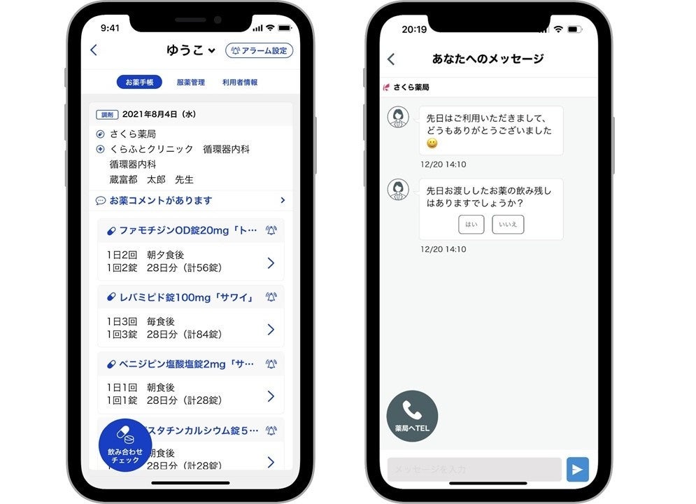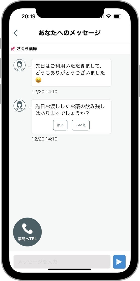 ・薬局からお薬の服薬状況について、メッセージが届きます