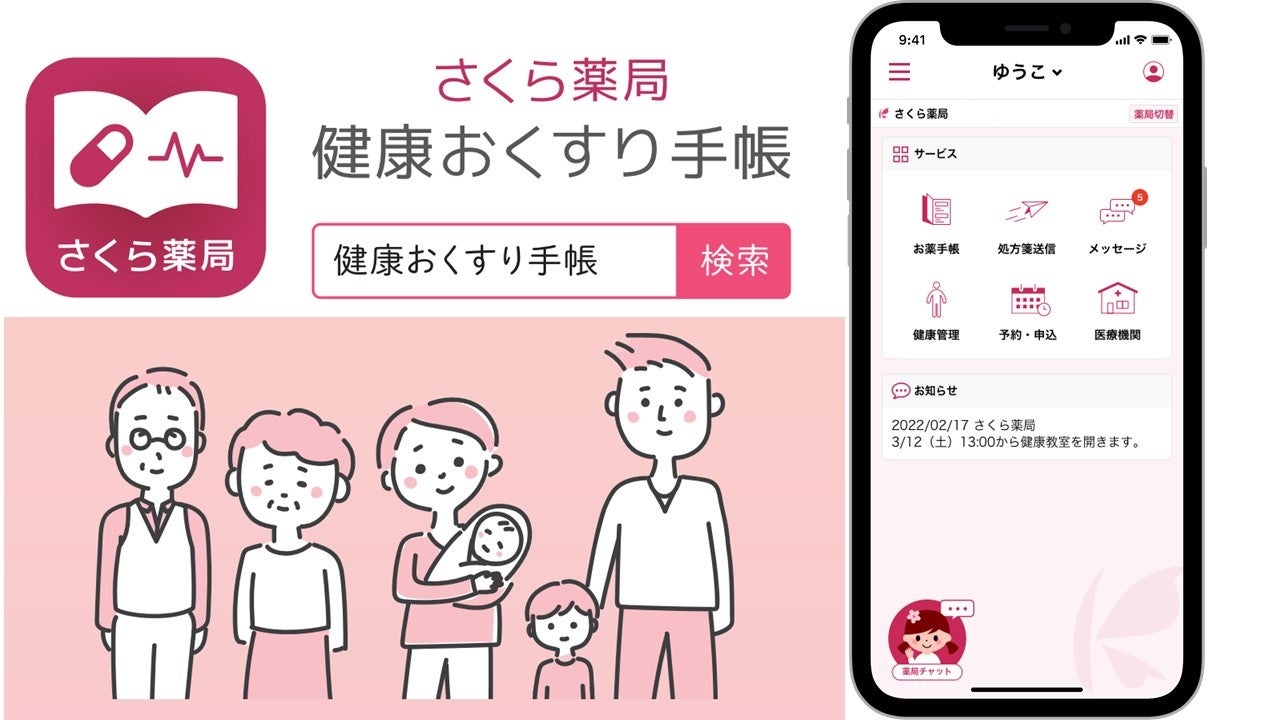 さくら薬局グループ 公式多機能アプリ「健康おくすり手帳」をリリース 服薬情報管理に加え健康管理も可能に
