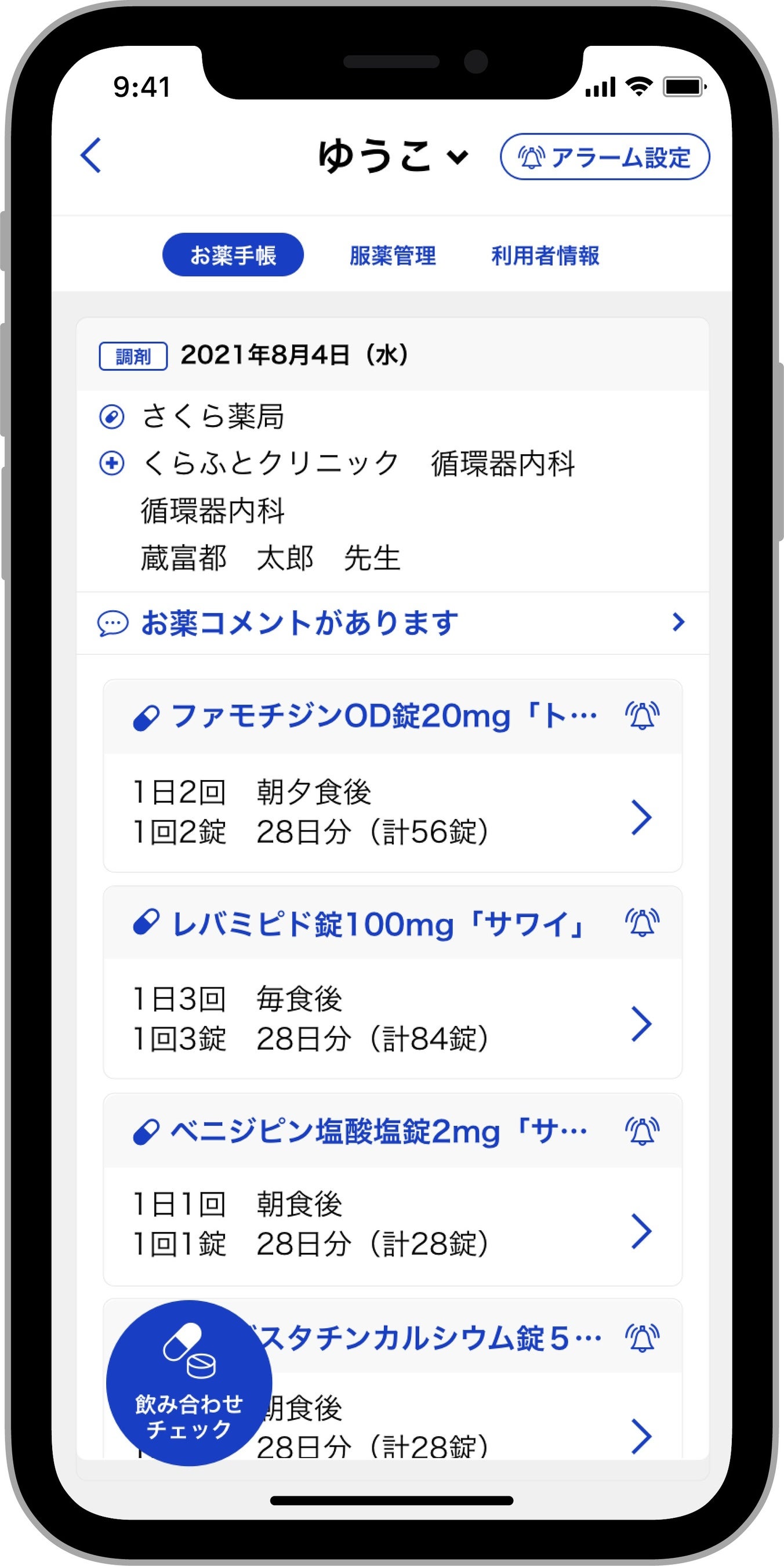 ・服薬カレンダー/アラーム機能をお使いいただけます