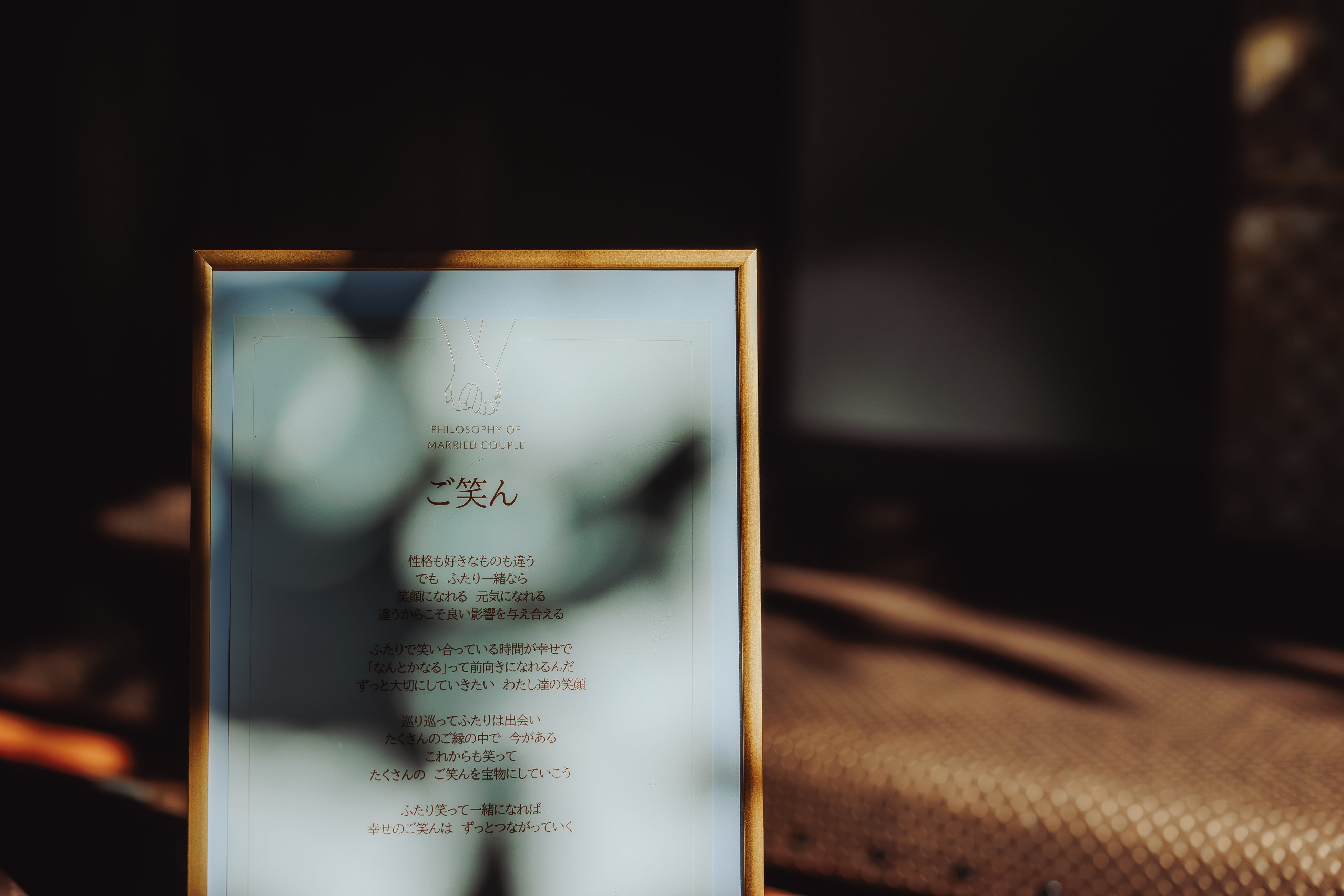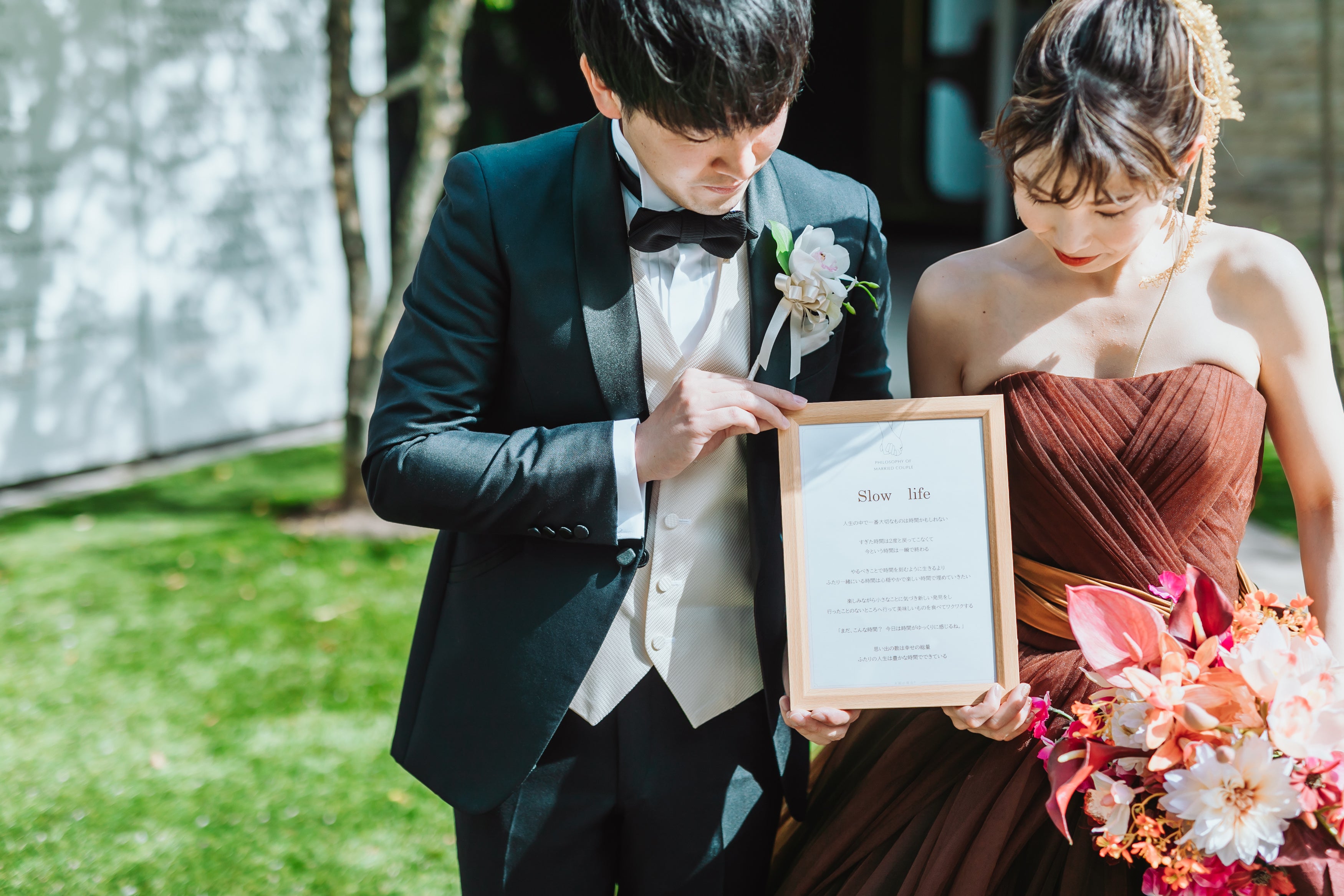 宗教的な儀式でもなく、⼈前式でもない、これまでの⼈⽣に感謝し、共に⽣きる相⼿への愛を伝え合う、2⼈の希望である幸せの形を宣⾔する、夫婦の理念®︎を基にしたオリジナルセレモニーです。