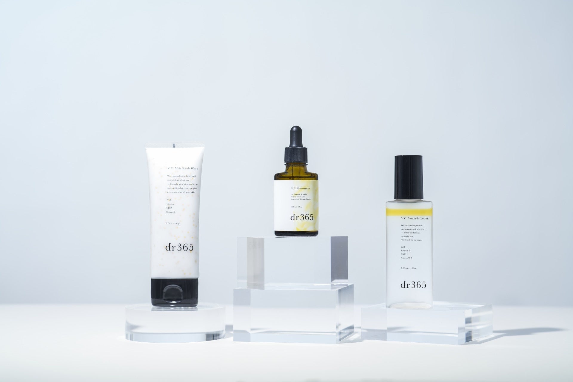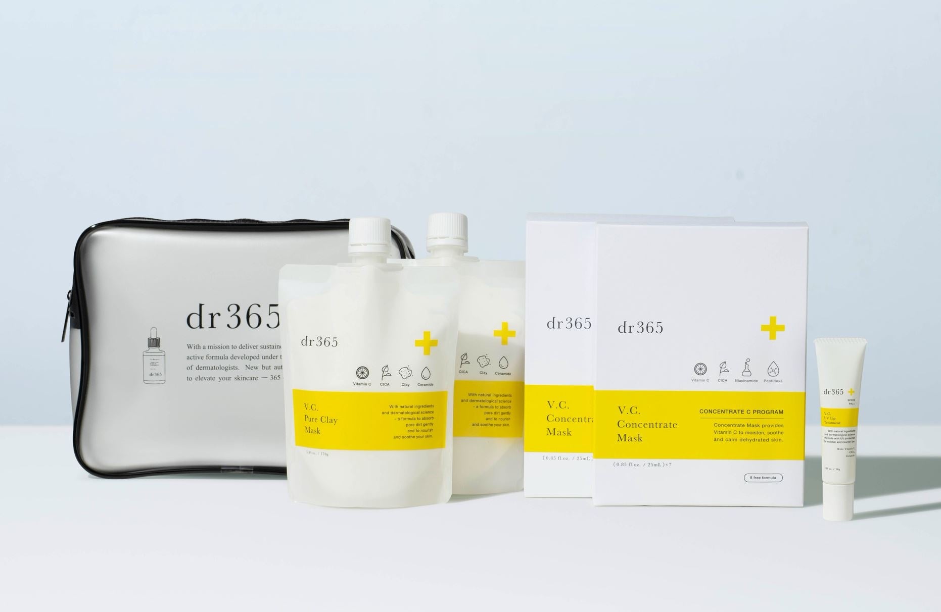 dr365の人気定番アイテムに加え、夏の限定製品が詰まった【dr365 コンプリートセット】と、夏の肌悩みにアプローチする限定品のみで構成された【dr365 リミテッドセット】が限定セットとして登場。また、抜けるような透明感を目指す【V.C. ピュアクレイマスク】、夏の日差しから唇を守る【V.C. UVリップトリートメント】、販売するたびに即完売となる集中ケア用の有用成分を高配合した【V.C. コンセントレートマスク】が、全国販売に先駆けPOP-UP STORE先行で販売されます。