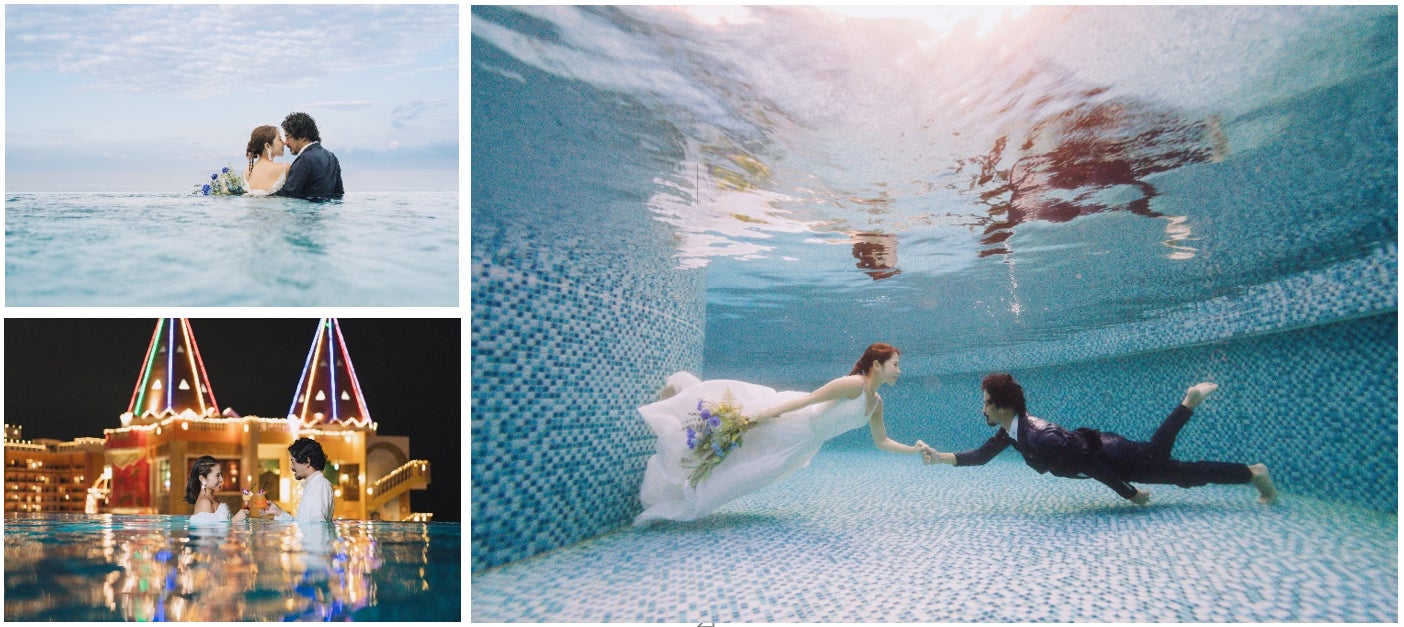 ■10組限定・創業100周年を記念した特別フォトウェディング付宿泊プラン ■異国情緒あふれるフォトスポットで有名な北谷を舞台にドラマティックな水中フォト体験