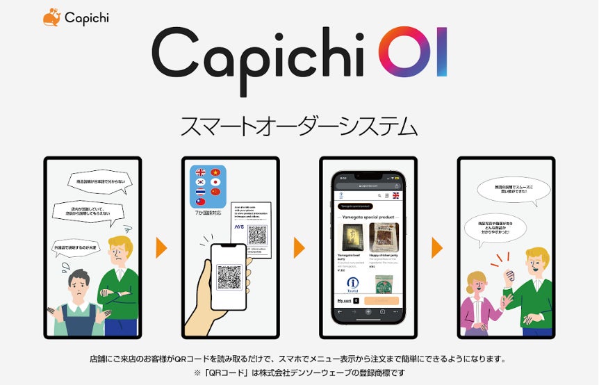 スマートオーダーシステム「Capichi OI」は、お客様が2次元バーコードをスマートフォンで読み取ることで、写真や動画を利用した最大7言語(日本語・英語・韓国語・中国語<繁体字・簡体字>・タイ語・ベトナム語)に対応した商品の説明と注文を行うことが可能なツールです。日帰りバスツアーの行程やツアーのハイライトをお客様ご自身で確認し、自分に合った商品を探したり、芋焼酎など日本独自の特産品に関して生産者のこだわりや特徴などを各国の言語でより深く紹介したりすることが可能になります。また、来店前の事前予約注文にも対応しており、お客様が購入したい商品を事前に注文しておいて、現地で購入・受け取りができるようにもなります。さらに、Capichi OIはPOSシステムと連携しており、注文情報の自動反映、在庫管理連携などができるため、従業員様の業務効率化にも貢献します。