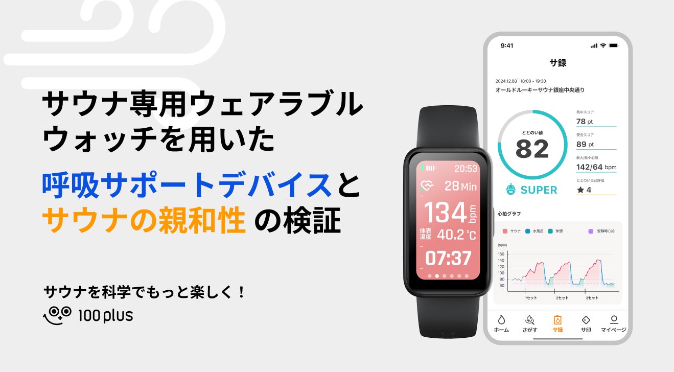 株式会社100plus(本社:東京都、代表取締役CEO 加藤容崇)、BREATHER株式会社(本社:東京都、代表取締役 立岡茂伸)はサウナと呼吸の関連性を明らかにするため、BREATHERが手掛けるフレーバー付きの深呼吸サポートデバイス「ston s」を使用し、サウナ・水風呂・休憩、それぞれのフェーズにおいての「呼吸がもたらす効果」について検証しました。検証の結果、休憩中に「ston s」を使用することで、休憩時の呼吸が深まり、副交感神経活性が高まるとともにサウナサイクル全体での生理的・心理的リラックス効果が得られることがわかりました。