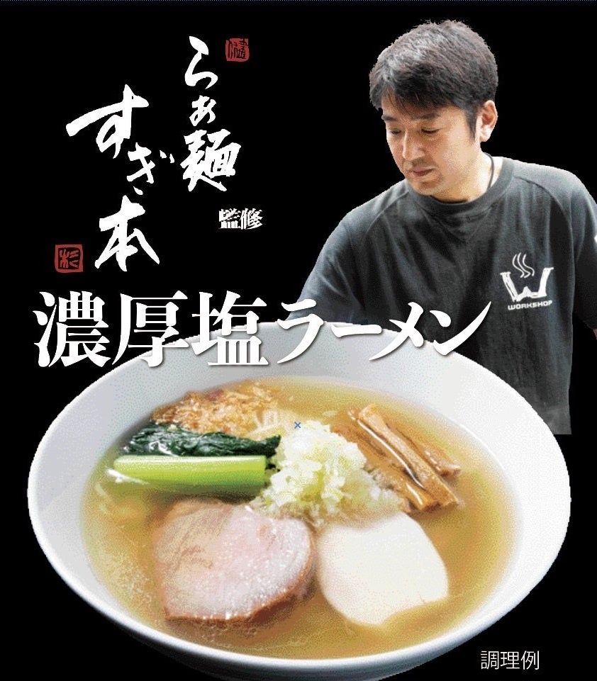 まずは、横浜市青葉区に店舗を構える「佐野実さん最後の弟子」として知られる「らぁ麺 すぎ本」から濃厚塩ラーメン、鶏豚魚介野菜がバランス良く飽きのこないスープに、香り強い細麺の一体感が絶妙の一杯。