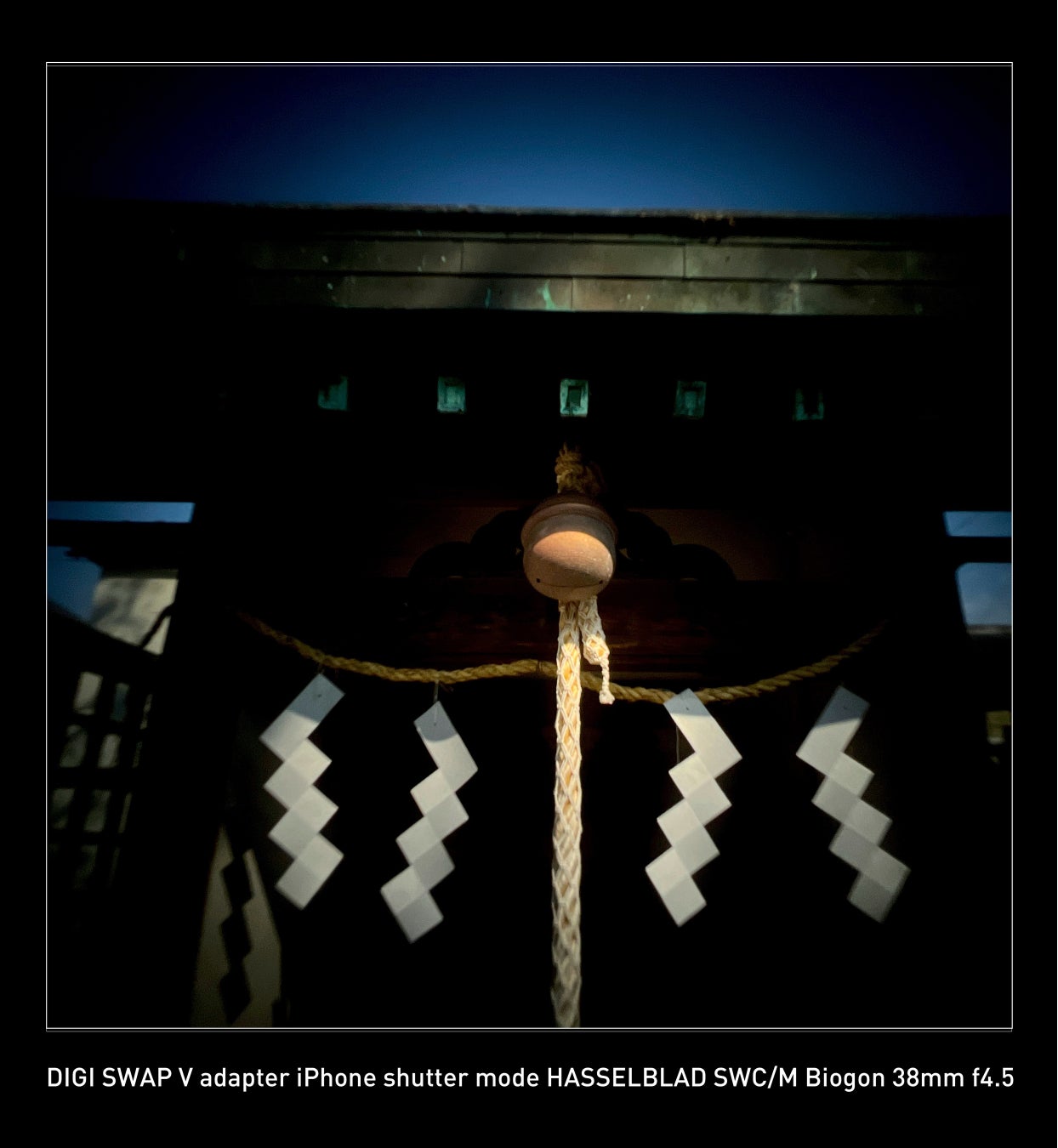 iPhoneをVアダプターに取り付け、専用アプリを立ち上げ、ハッセルブラッドのシャッターを切る。