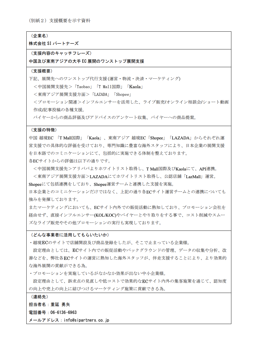 ※当補助金へお申込みで海外販路がまだない企業様については、T Mall国際/Kaola/LAZADA/Shopeeでの出品支援をご提供致します。