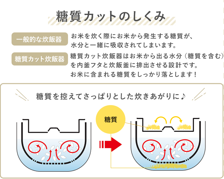コロナ禍に置いて在宅時間が増えている一方で運動する機会も減ってきています。そこでヘルシーな食事を手軽に楽しんで頂けるように糖質カット炊飯器を開発しました。