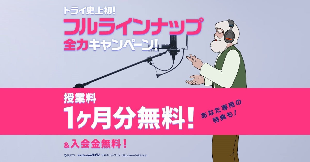 トライグループ、史上初「フルラインナップ全力キャンペーン」を開始!この春、どなたでも授業料1ヶ月分+入会金が無料!