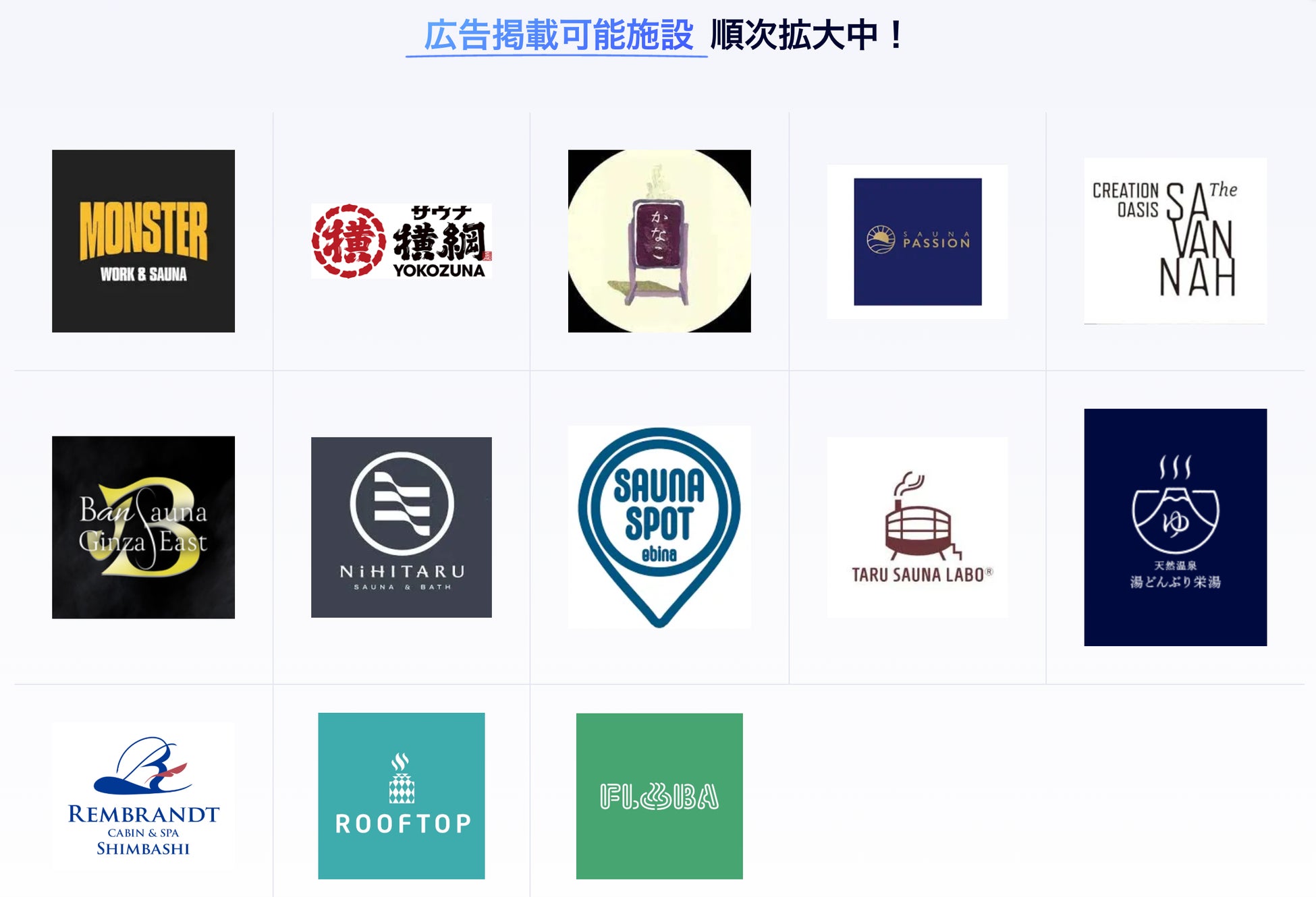 現在、首都圏を中心に13のサウナ施設が加盟しており、さらなる拡大を予定しています。