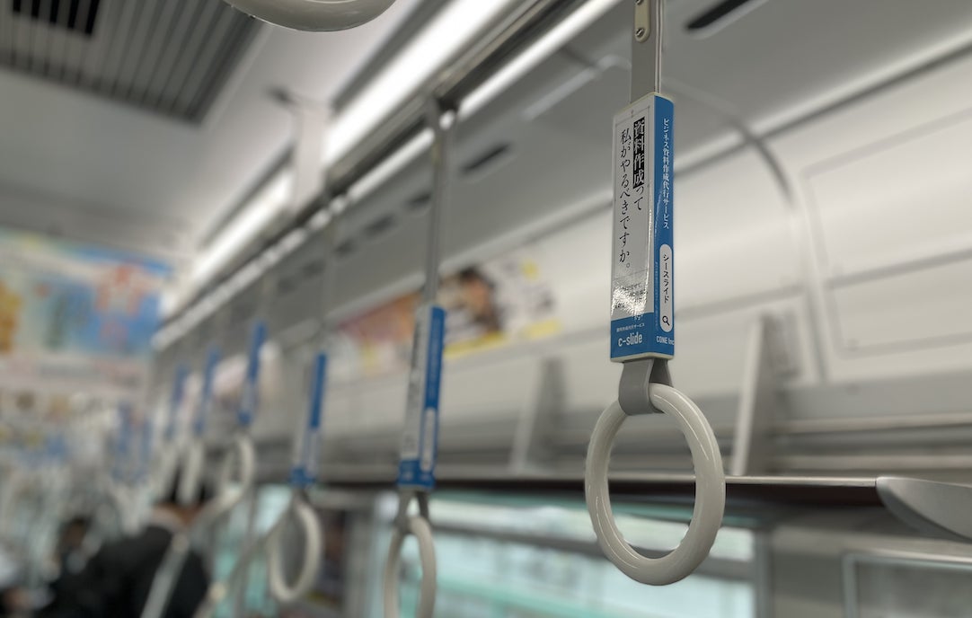 資料作成代行サービス「c-slide」が、Osaka Metro御堂筋線のつり革に。