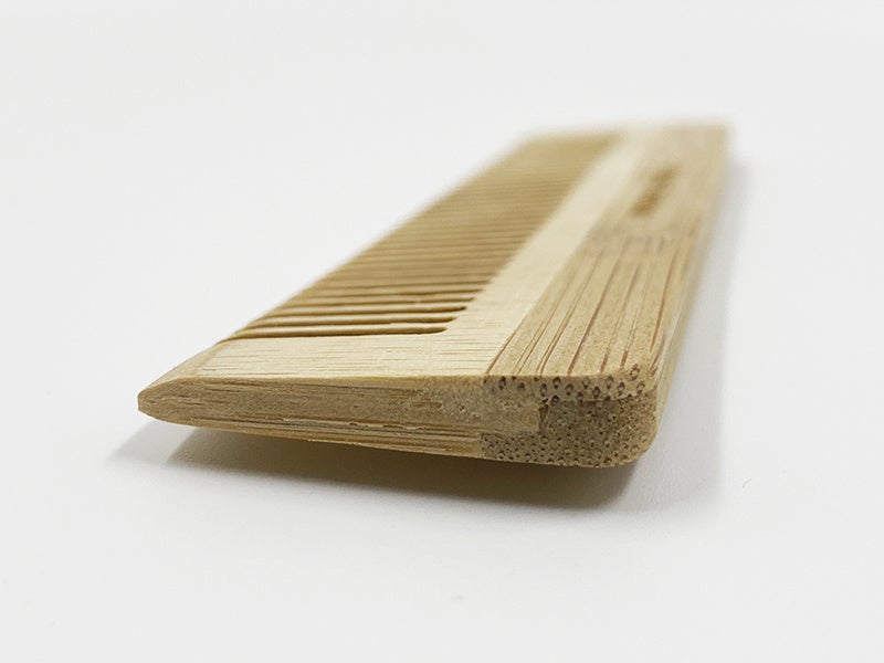 これに対し、竹製の櫛は靭やかで折れに強い。竹は縦方向に繊維(維管束鞘)が通っている為だ。さらに櫛の歯と持ち手部分の繊維の向きを変えることで、歯の部分を折れにくい構造にしている。