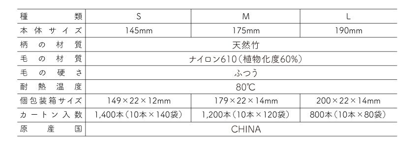 - 竹歯ブラシの長さ:S/145mm、M/175mm、L/190mm