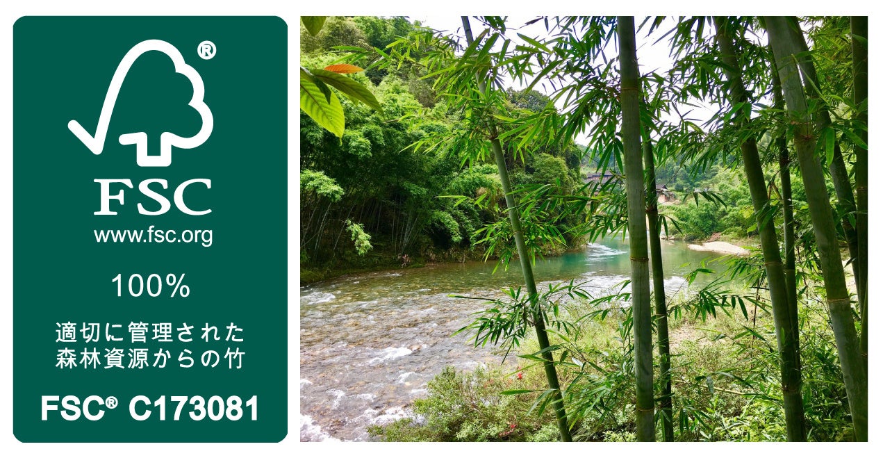 安心と信頼の保証、「FSC認証」を取得した山の竹林より採取