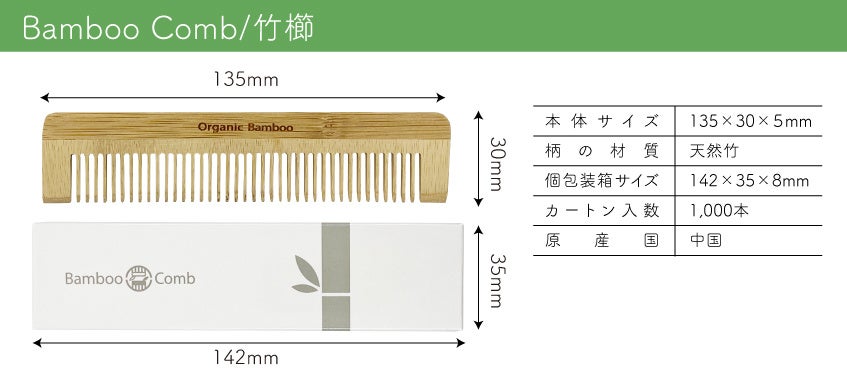 【新商品続々】竹の歯ブラシに続き、竹の櫛「Bamboo Comb」販売開始!ホテル向けオーガニックアメニティますます充実。