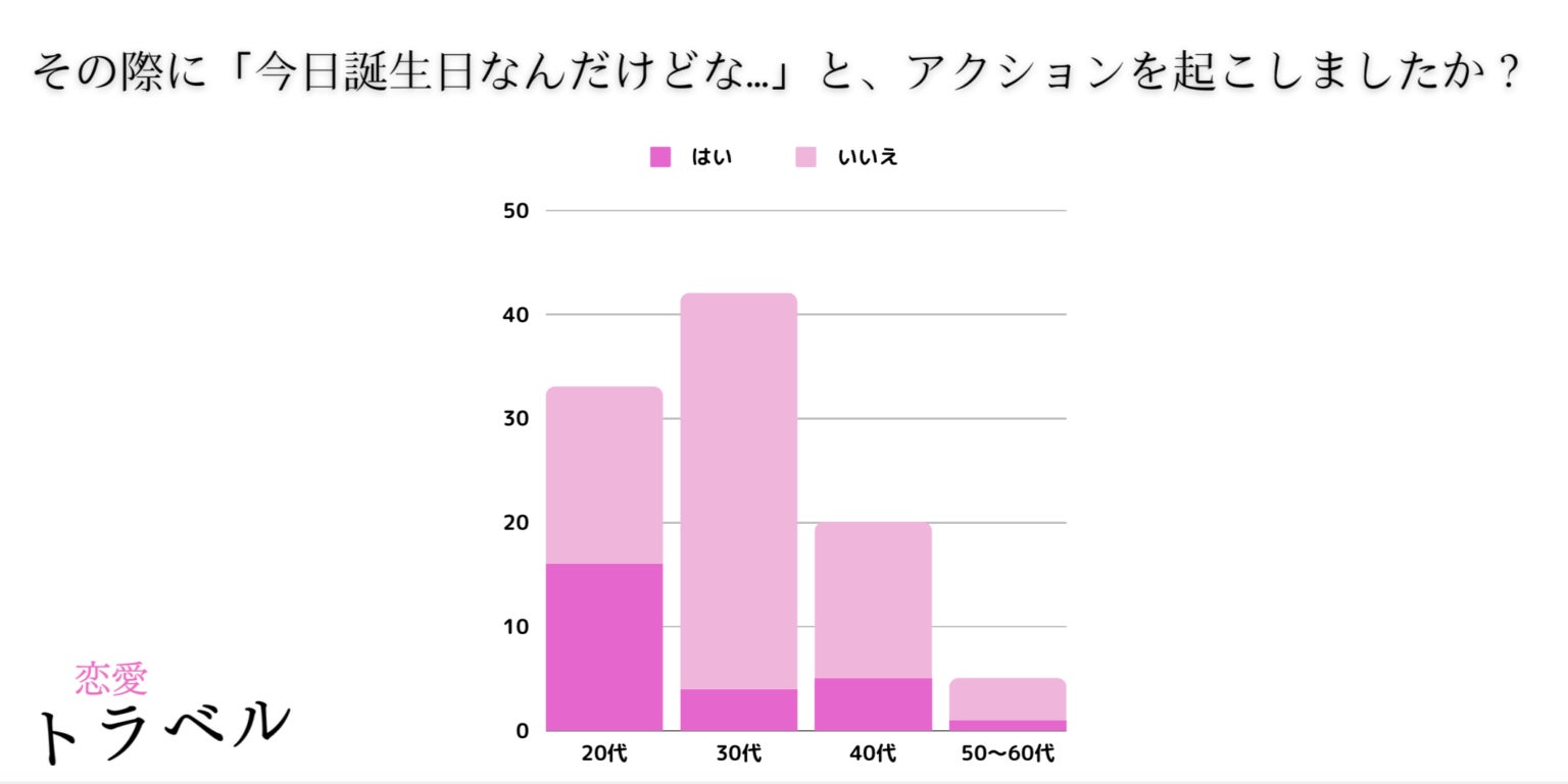 誕生日を忘れられてしまった時に『アクションを起こす』と回答した女性は、20代が一番多く積極的な傾向あるという結果になりました。