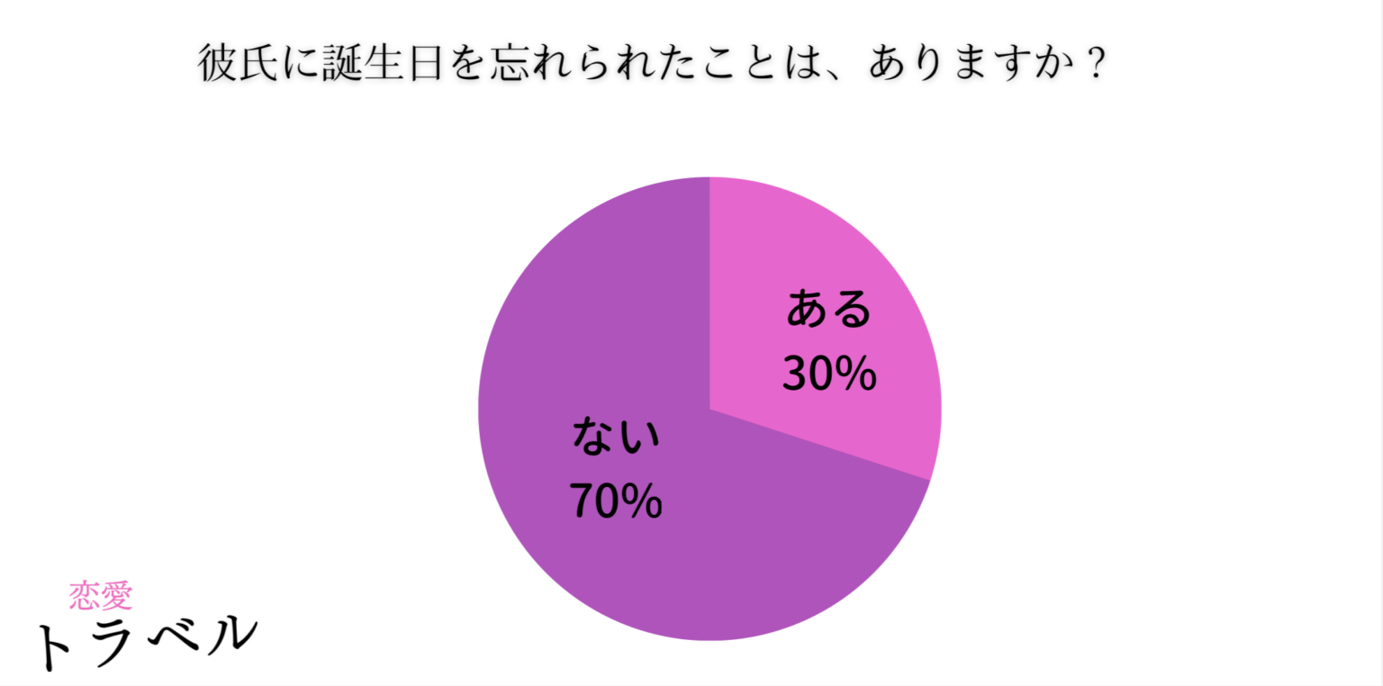 その結果、彼氏に誕生日を忘れられた女性は3割ほどいることがわかりました。