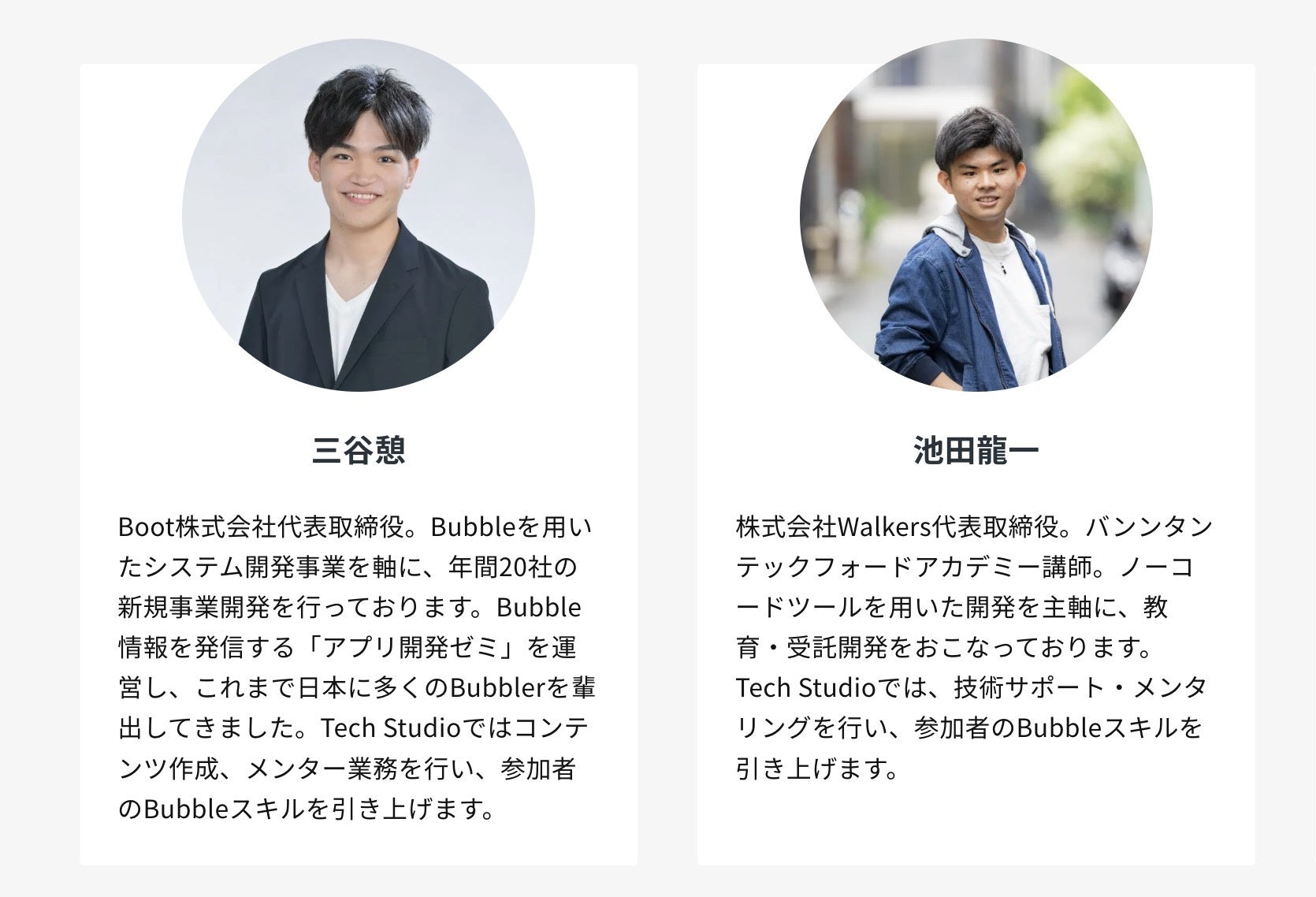 ※Tech StudioはWalkersが展開するノーコードメンタリングサービス「ゼロイチ」を発展的に移行したサービスとなります。
