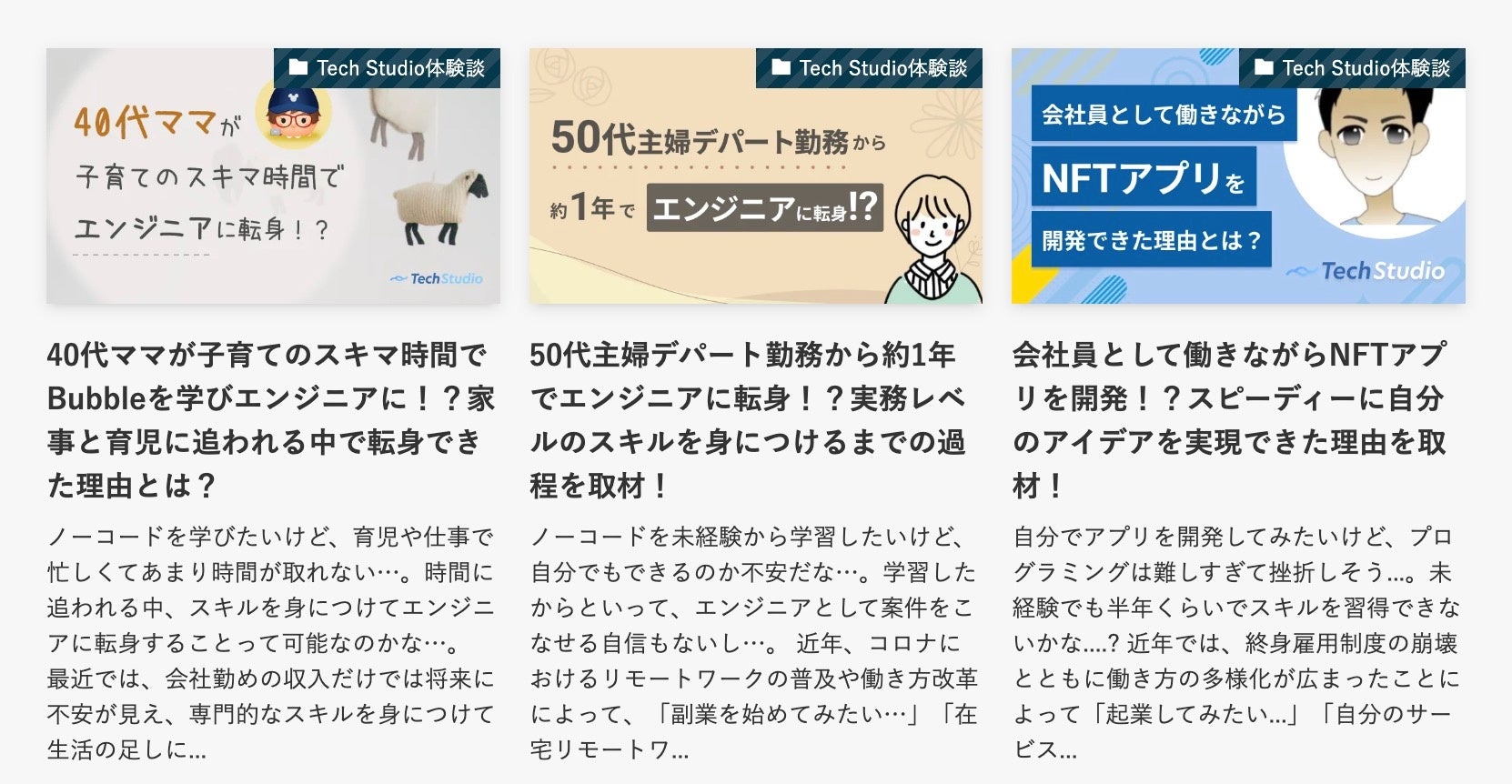 【新ノーコードスクール誕生】実践的なノーコード開発スキルを学びセカンドキャリアを切り開くためのオンラインスクール「Tech Studio」が募集を開始。