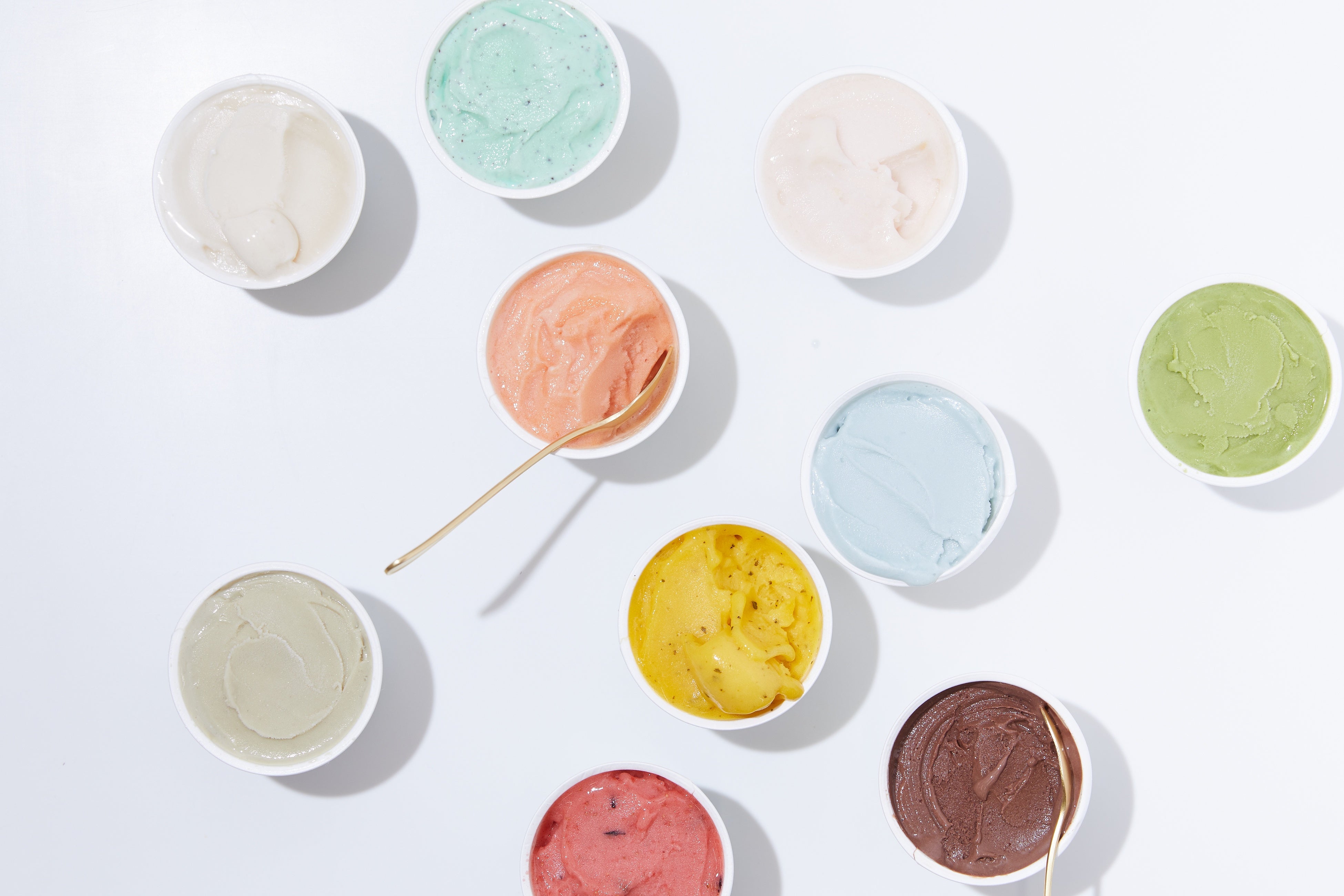 アーモンドミルク/ブロンテピスタチオ/ヘーゼルナッツチョコレート/イタリアンソルト/ペスカ ローザ(白桃)/ブラッドオレンジ/八女玉露抹茶/あまおうハイビスカス/ミントマンゴー/チョコミント/アーモンドココア/黒胡麻きなこ
