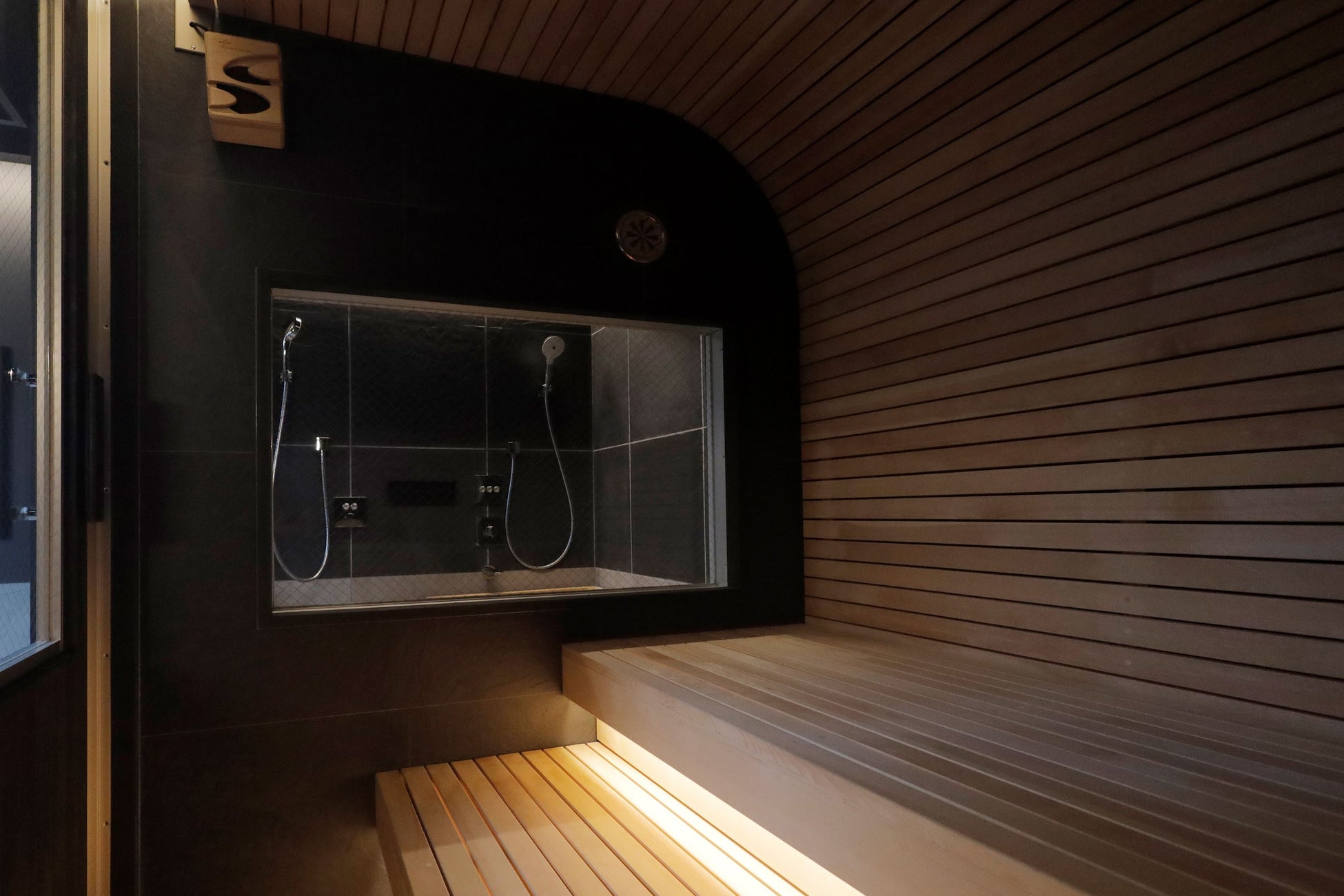 また、天井が高く、サウナベンチは奥行があり幅を十分にもたせているため、サウナ室全体に包み込まれるような体験を得られます。