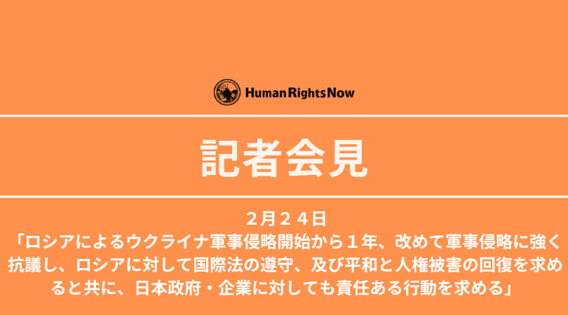 記者会見:ロシアによるウクライナ軍事侵略開始から1年、 改めて軍事侵略に強く抗議し、 ロシアに対して国際法の遵守、及び平和と人権被害の回復を求めると共に、 日本政府・企業に対しても責任ある行動を求める