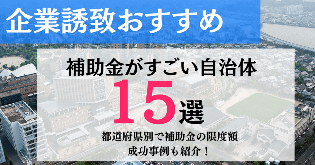 出典:企業誘致でおすすめの自治体ランキング15選!都道府県別で補助金の限度額や成功事例も紹介!