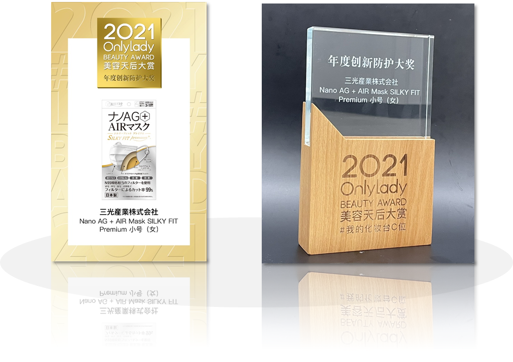 三光産業株式会社 (本社:東京都渋谷区、代表取締役社長:石井 正和) は、ナノAG+AIR マスク SILKY FIT Premium が 2021 Only Lady BEAUTY AWARDを受賞致しましたのでご報告致します。
