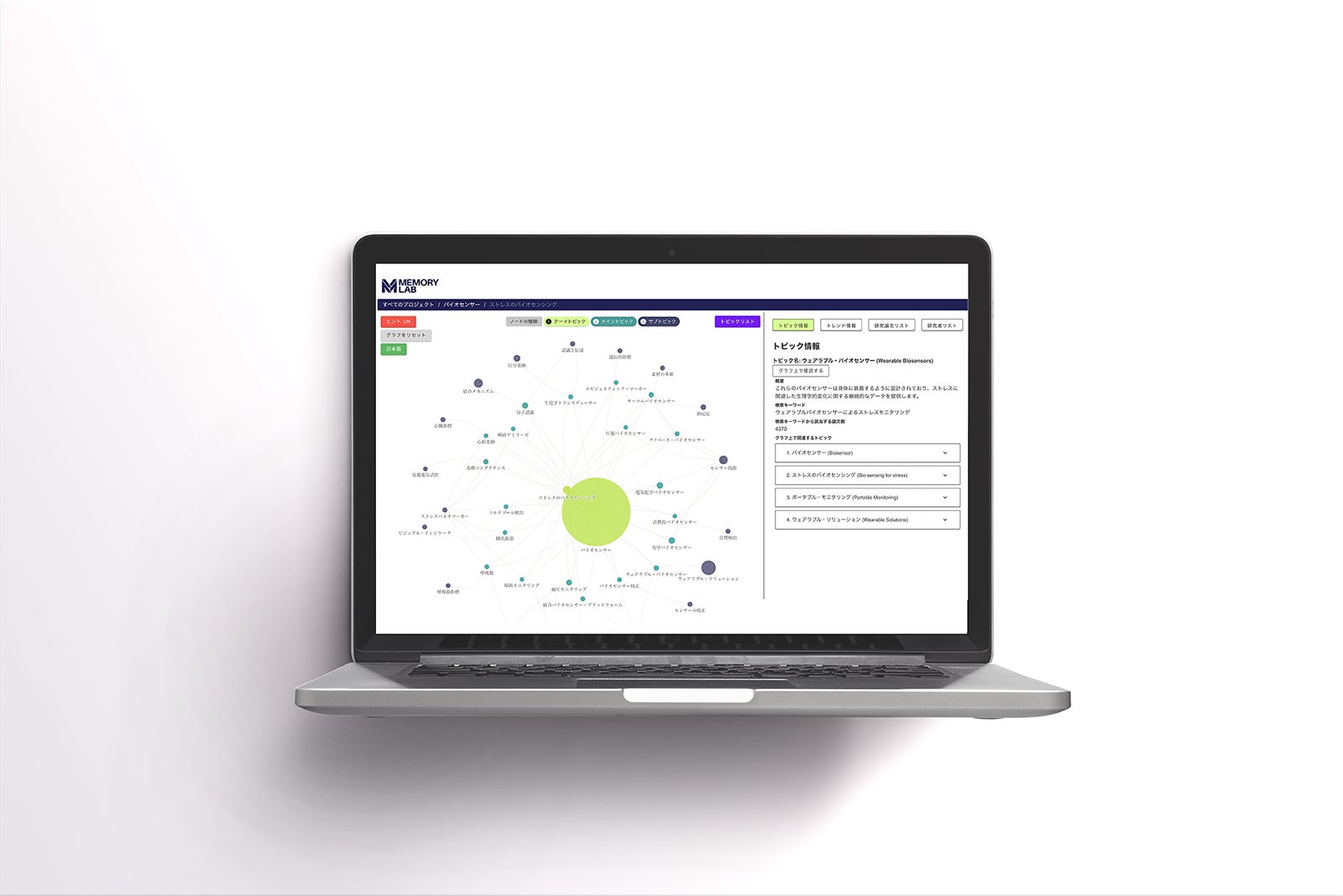 株式会社MEMORY LABは『科学の叡智を社会へ』をミッションに掲げ、世界の研究開発のハブとなることを目指す技術調査におけるリーディングカンパニーです。独自のAIアルゴリズム(自然言語処理*特許)を用い、研究開発の中核を担う調査の障壁を取り除くことで、誰もが科学技術にアクセスできる世界を創ります。現在はエンタープライズ向けに、新規事業・研究開発に特化したテクノロジーリサーチ『Memory AI』の提供に向けて開発を進めております。膨大な論文情報、特許情報、市場情報を独自のデータベースに搭載しており、通常約半年から一年以上かかる調査を最短一週間に短縮することができます。