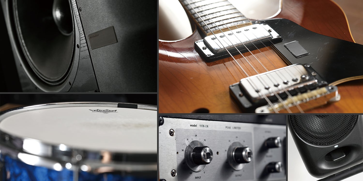 スピーカー、各種プレーヤー、アンプ、ドラム、ギター、ベース、マイクなど。