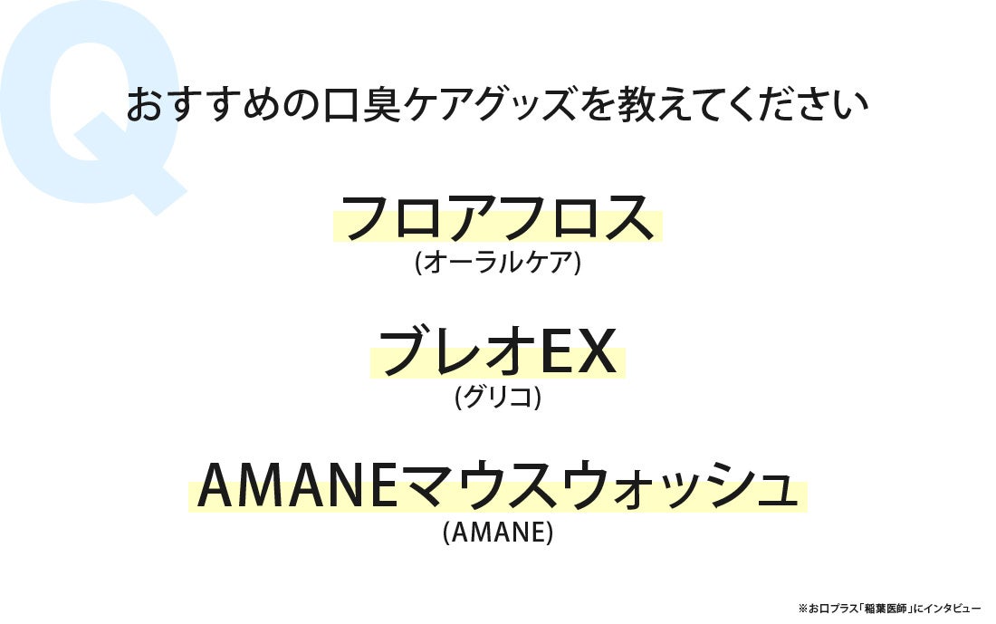お口プラスの稲葉院長にインタビューし、おすすめの口臭ケアグッズを教えていただきました。