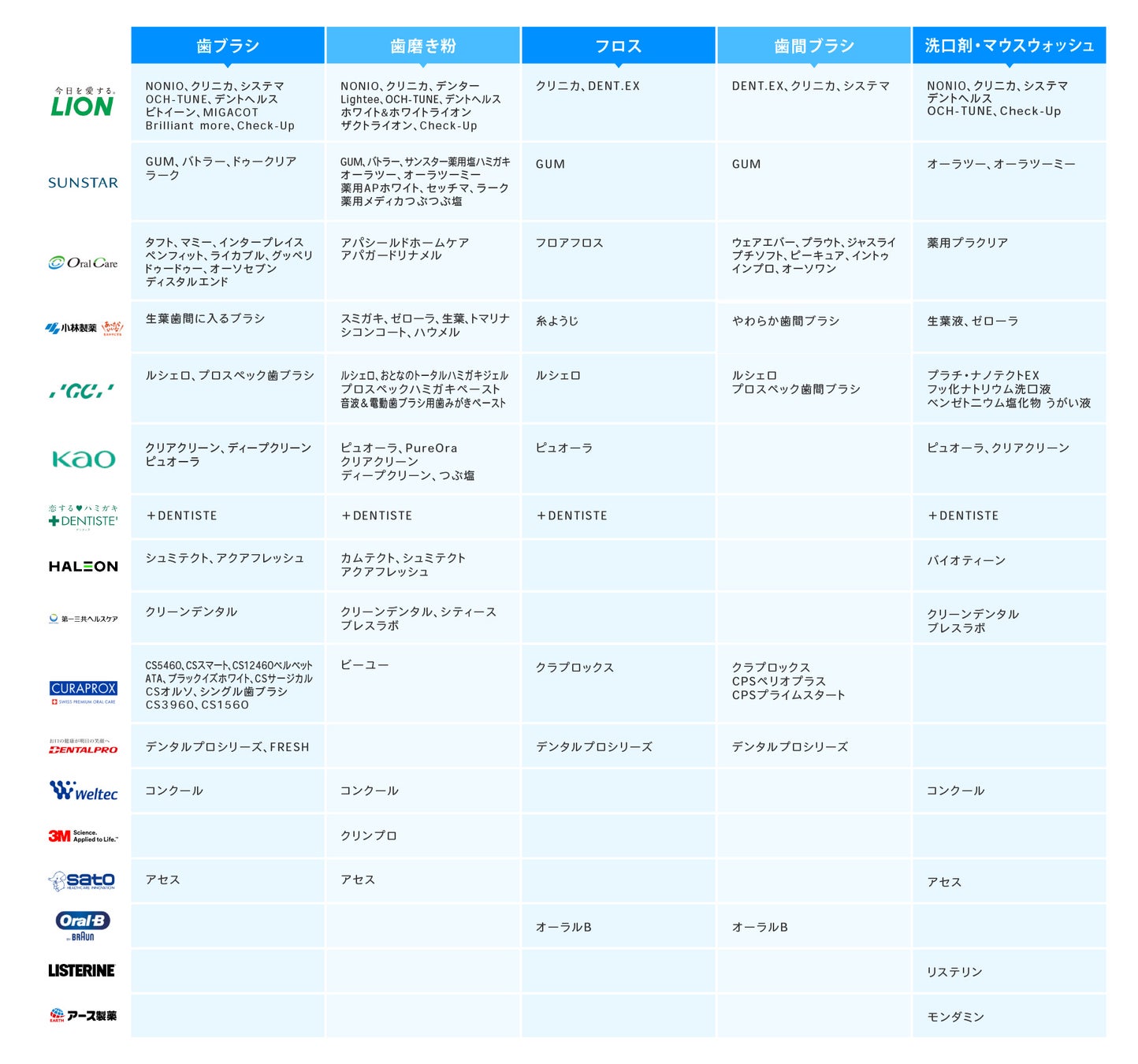 2位はKAOの「クリアクリーン」とHALEON「シュミテクト」、3位はSUNSTAR「GUM」でした。