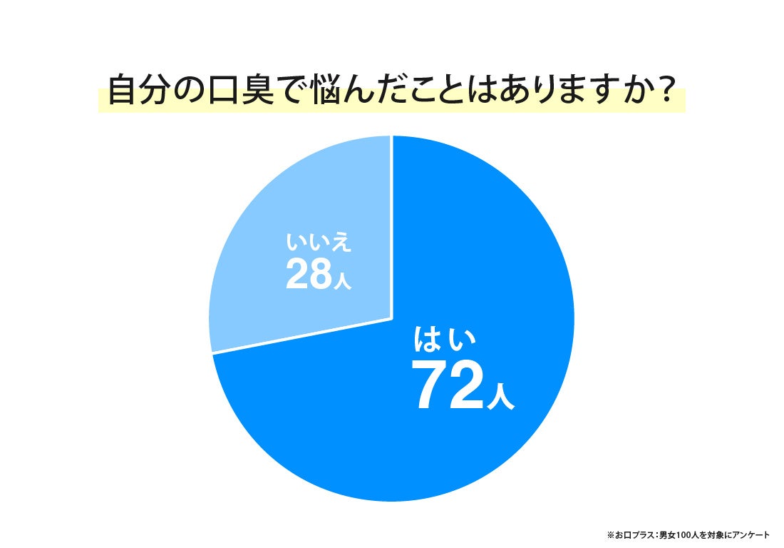 男女100人に自分の口臭で悩んだことがあるかアンケート調査を実施したところ、全体の7割以上の人が「ある」と回答しました。