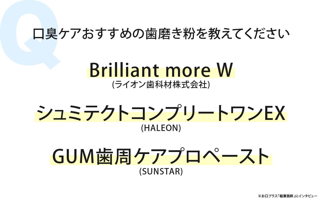 お口プラスの稲葉院長にインタビューし、口臭対策におすすめの歯磨き粉を教えていただきました。