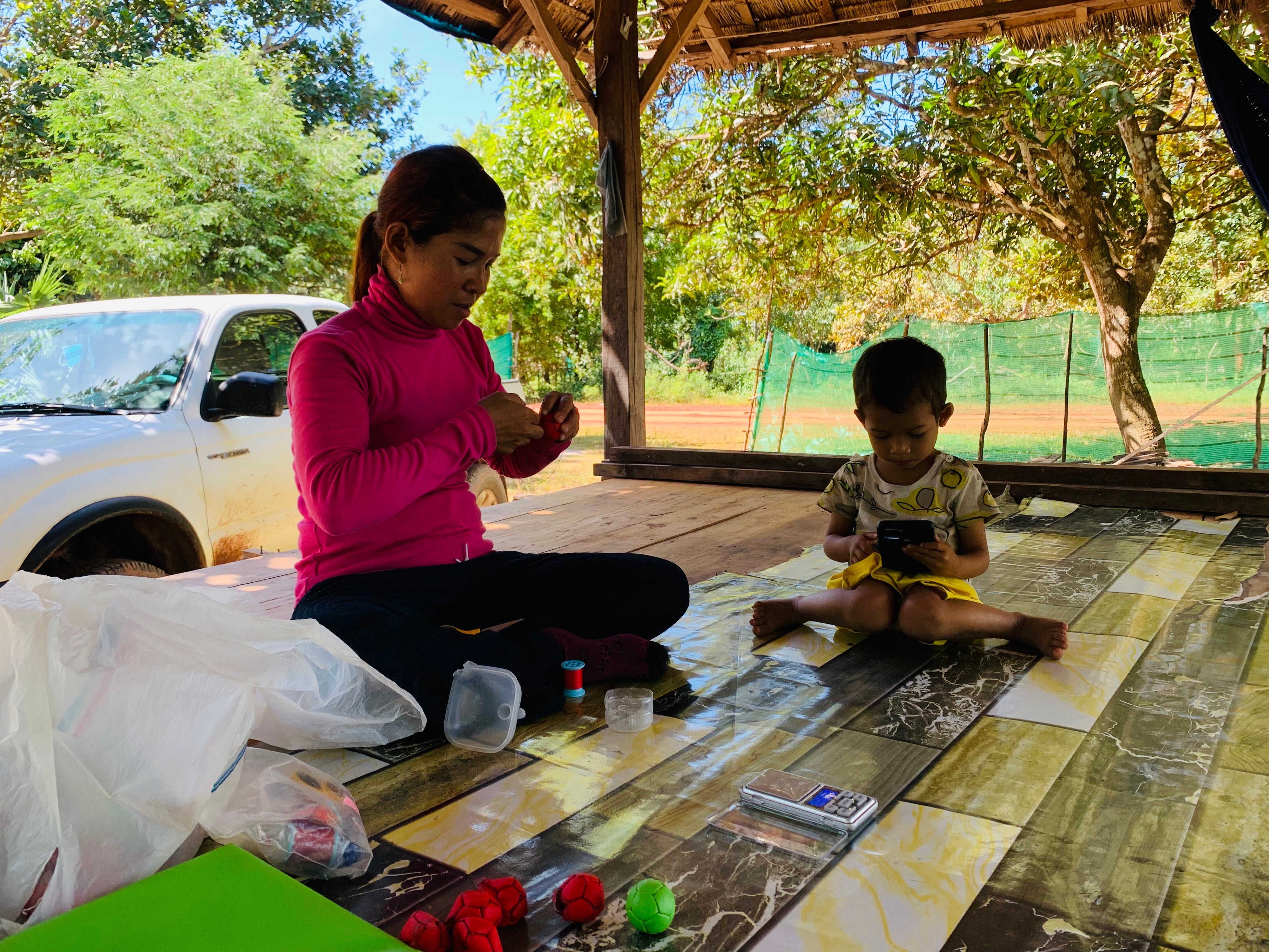 ロボッチャ®で使用するボールの一部は、カンボジアで生産をしております。子どもを学校に通わせるための経済的余力がない方に、ロボッチャボールを作ってもらうことで、所得の向上につなげ、地域教育の向上に寄与します。