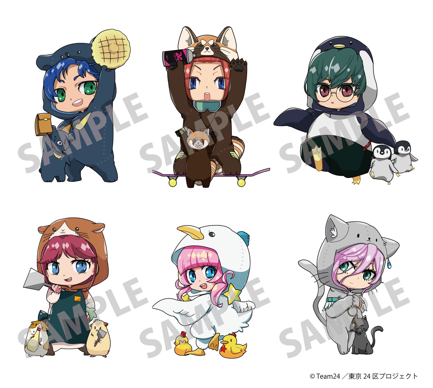 描きおこしミニキャラは可愛い着ぐるみ姿のシュウタ・ラン・コウキ・まり・きなこ・アスミの6キャラクターが登場。
