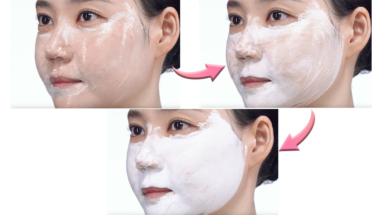 クレンジングを顔に塗ると、肌の温度に反応して自然と泡が浮きあがる仕組み。