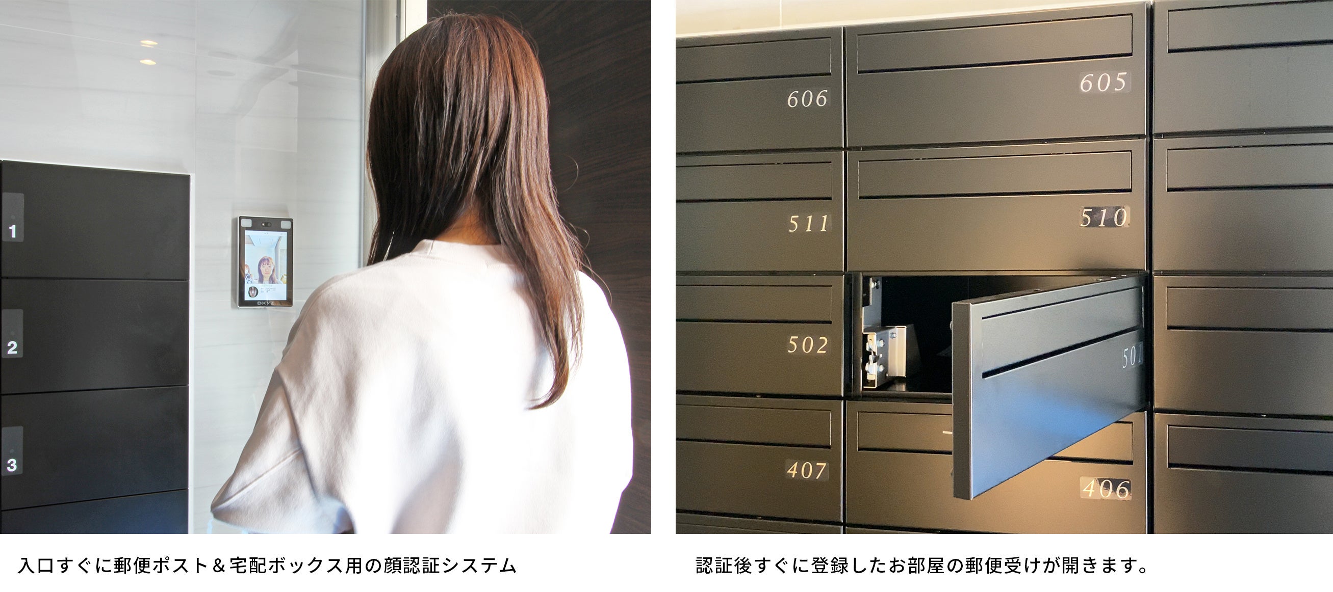 エントランス・宅配ボックスが顔認証で解錠!鍵を探す必要も、立ち止まる必要もありません。