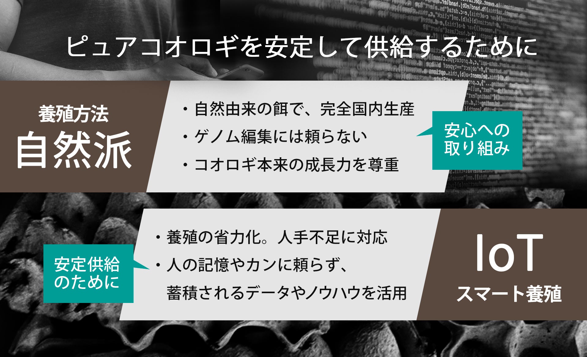 ゲノム編集に頼らず、本来の成長力を尊重したピュアコオロギ