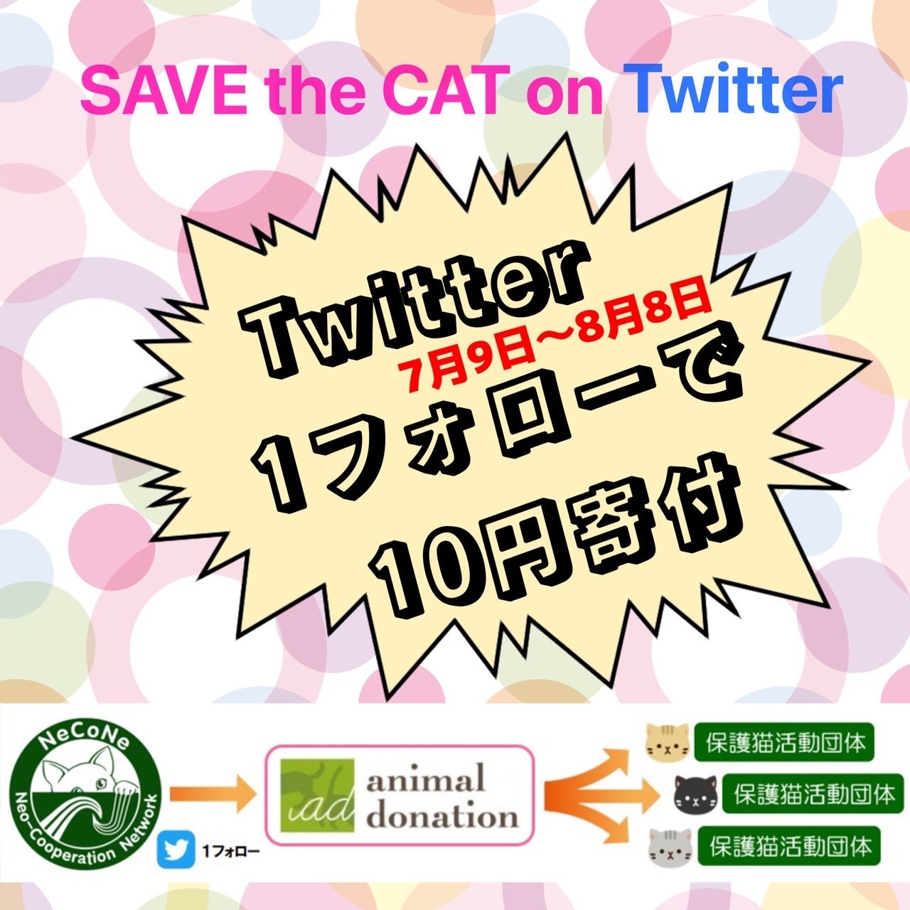 『 SAVE the CAT on Twitter !! 』 フォローが10円の寄付になる、ネコネ*アニドネによるコラボレーション寄付企画がスタートしました!!