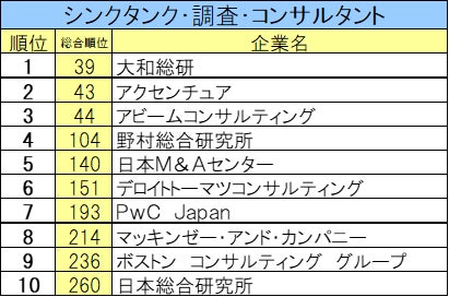 ◆シンクタンク・調査・コンサルタント業界TOP10◆