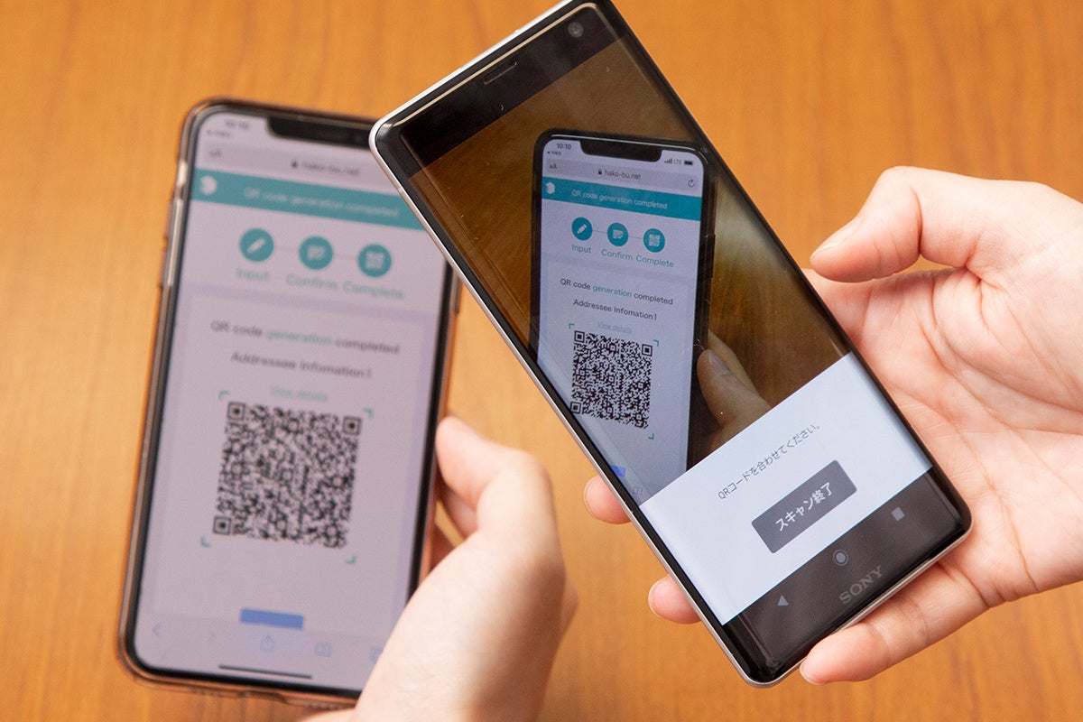 3.お客様のスマートフォン上にQRコードが表示されるので、店員がハコブネットアプリでQRコードを読み込みます。